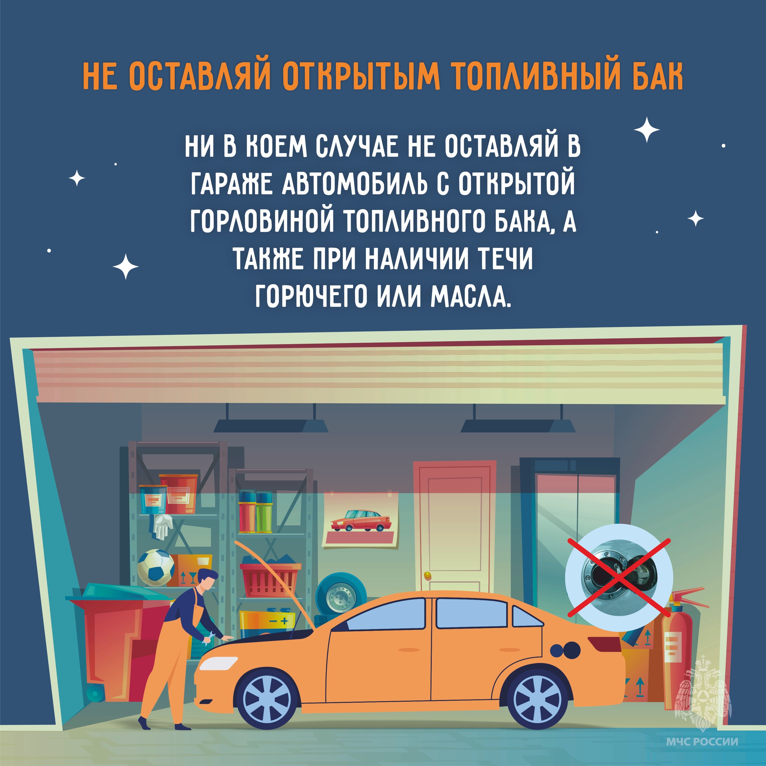 оставлять открытым топливный бак;