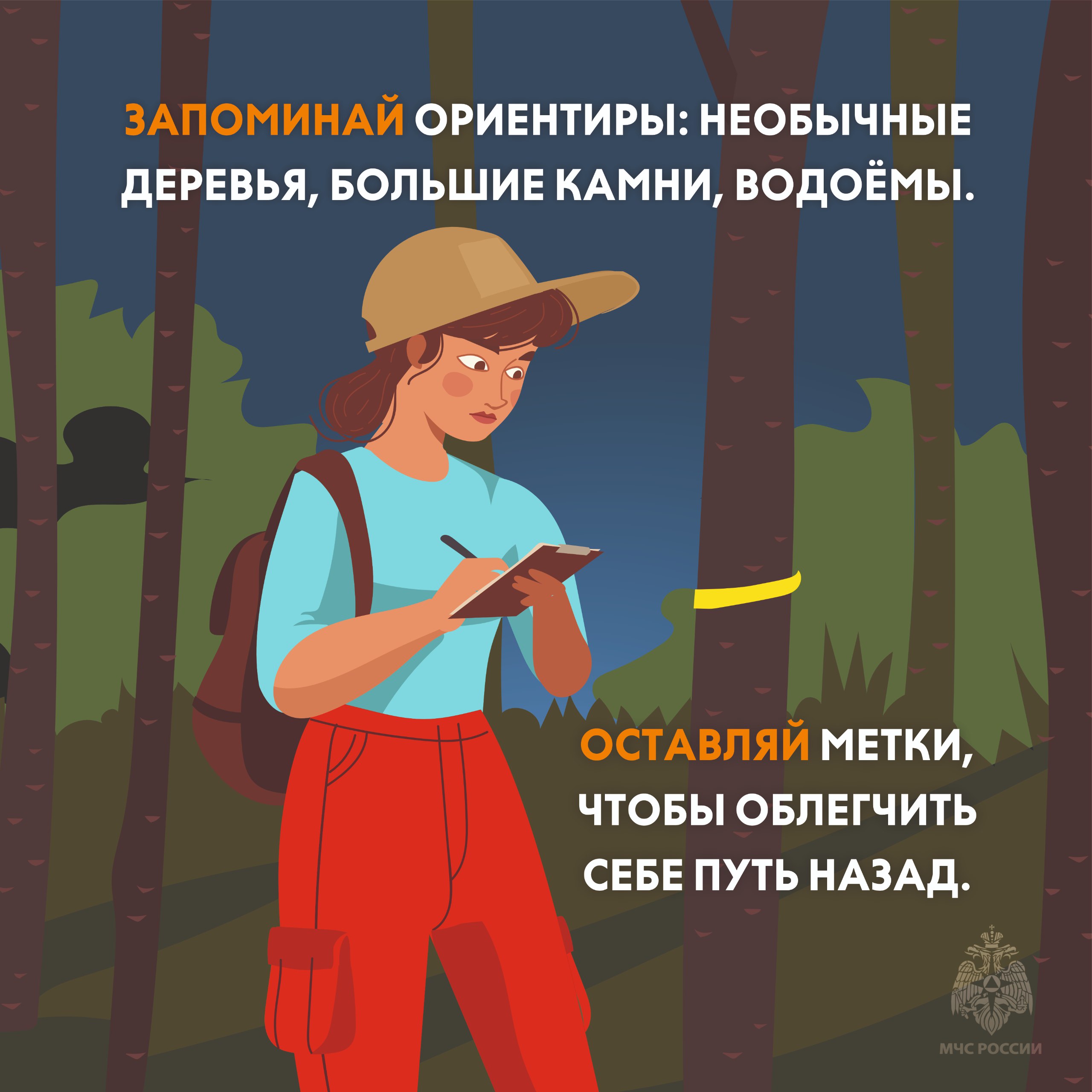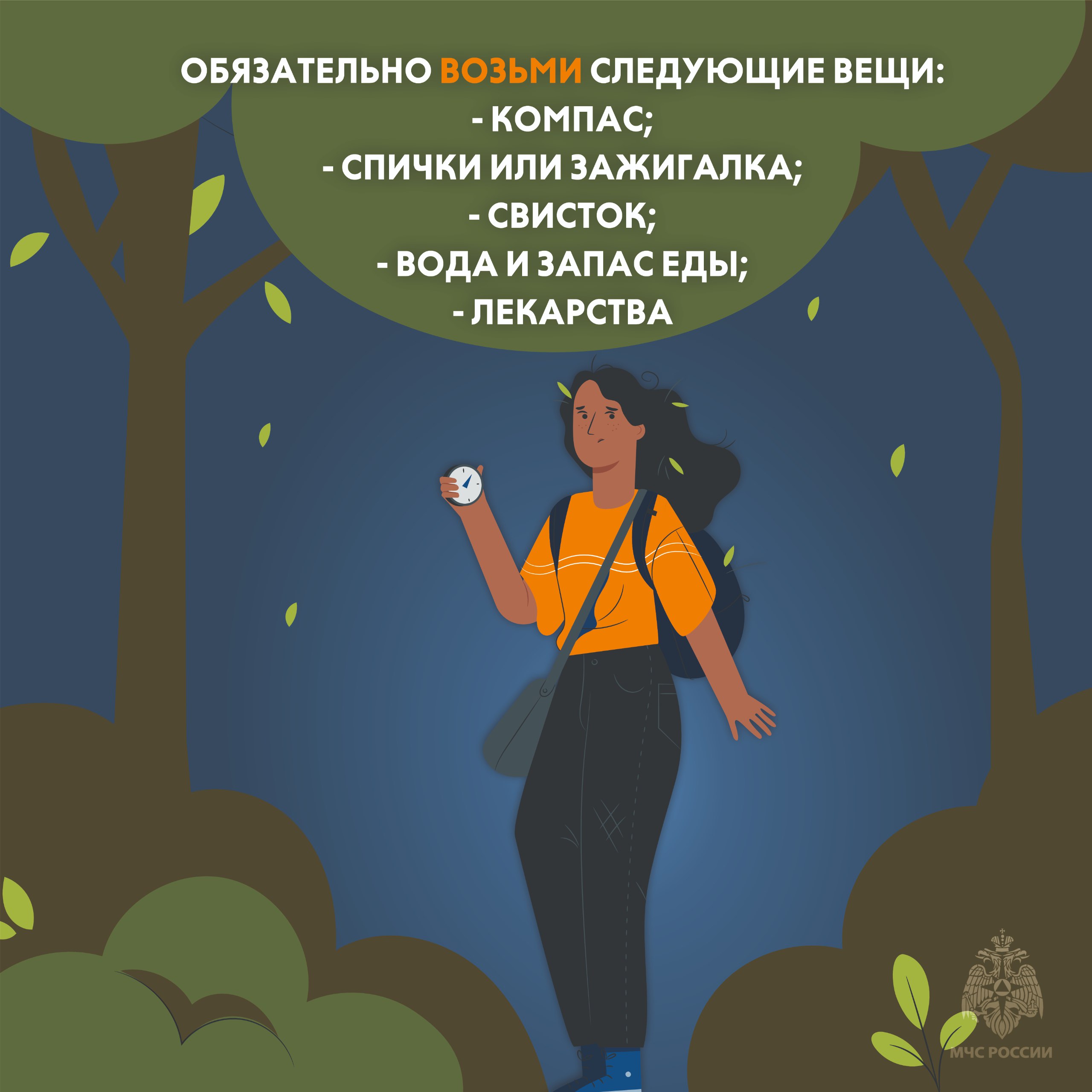 перед выходом в лес обязательно расскажи родным и близким, куда ты направляешься и когда планируешь вернуться;пополни баланс мобильного телефона, проверь заряд батареи и возьми повербанк;