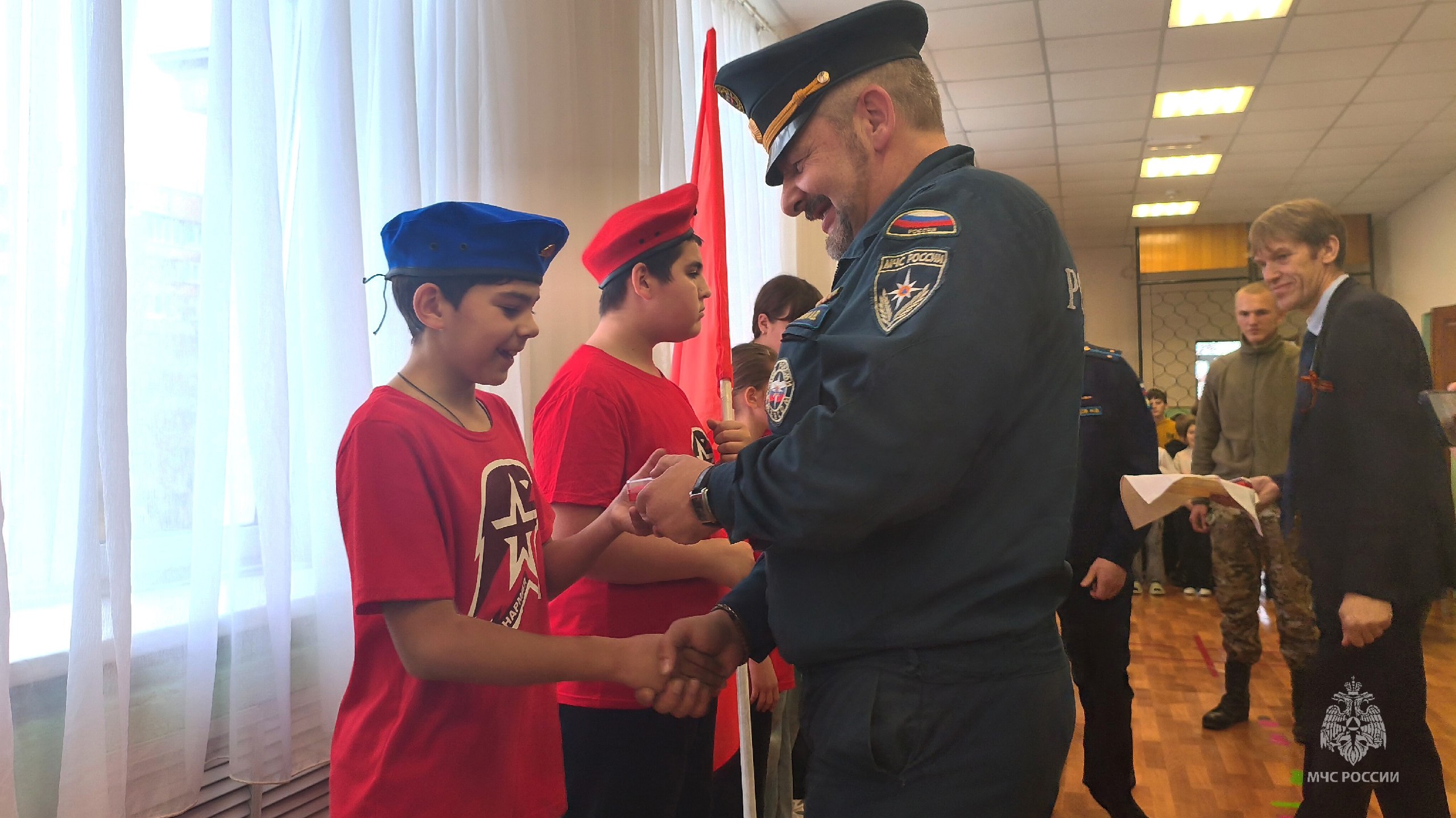 Сегодня начальник отдельного поста 1 пожарно-спасательной части города Пскова Александр Романюк принял участие в торжественном мероприятии вручения значков ребятам из отряда ВВПОД "Юнармии" имени М. Л. Тулупова в МБОУ "Псковская школа-интернат".