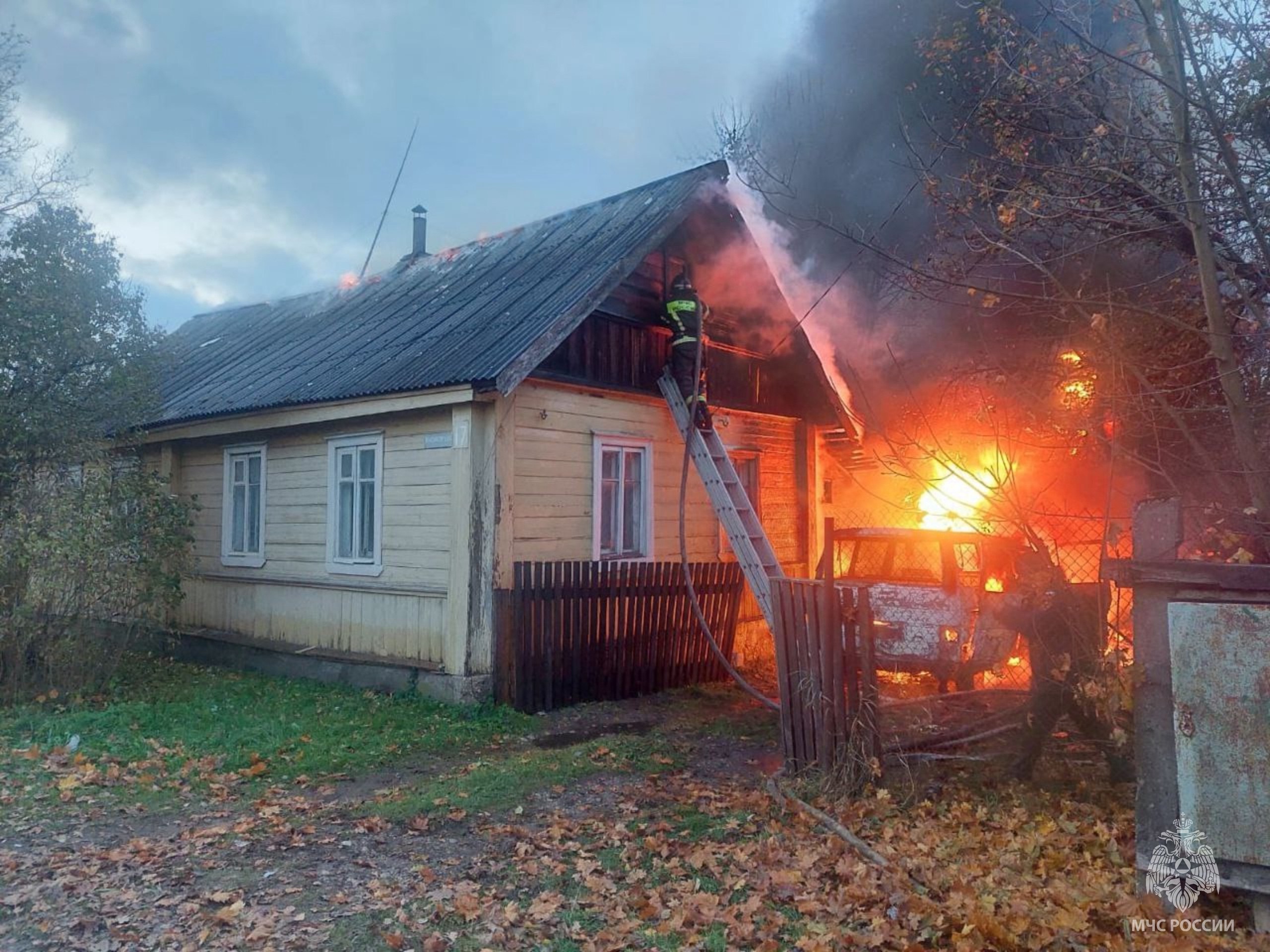 В 17:37 поступило сообщение о возгорании жилого дома на улице Красногородская в Опочке. Выгорело чердачное помещение по всей площади, огнем повреждена наружная стена. Сгорел автомобиль Volkswagen Т4 1995 года выпуска. Причина – предположительно короткое замыкание электропроводки в подкапотном пространстве автомобиля. Спасены жилой дом и хозяйственная постройка. Возгорание ликвидировали 9 специалистов МЧС России и 3 единицы техники.