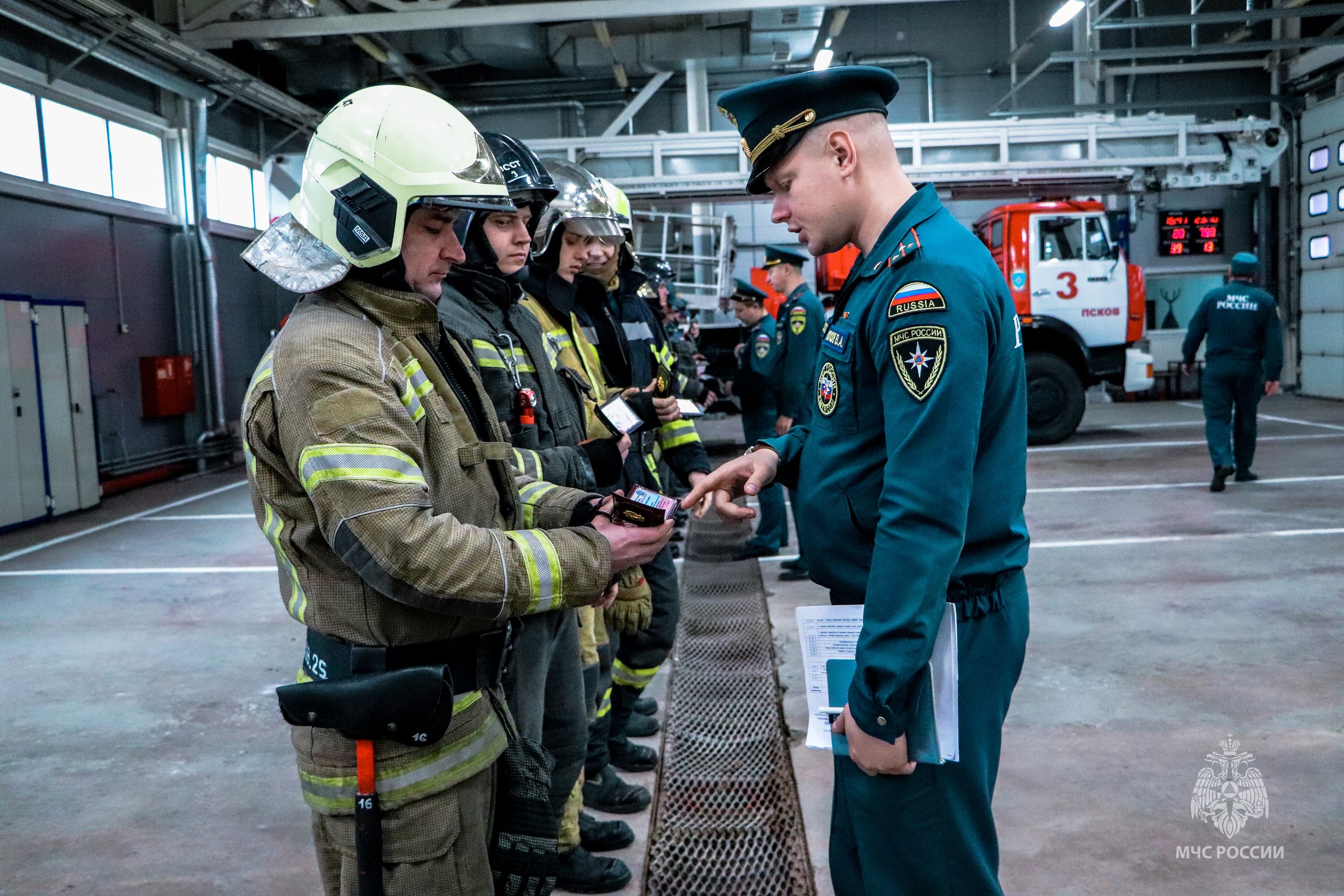 Начальствующий состав Главного управления МЧС России по Псковской области проверил соблюдение правил ношения форменной одежды, наличие удостоверений и личных жетонов, аккуратность и правильность нашивки погон, эмблем, шевронов, размещение знаков отличия. Проверено состояние и работоспособность специальной техники и снаряжения.
