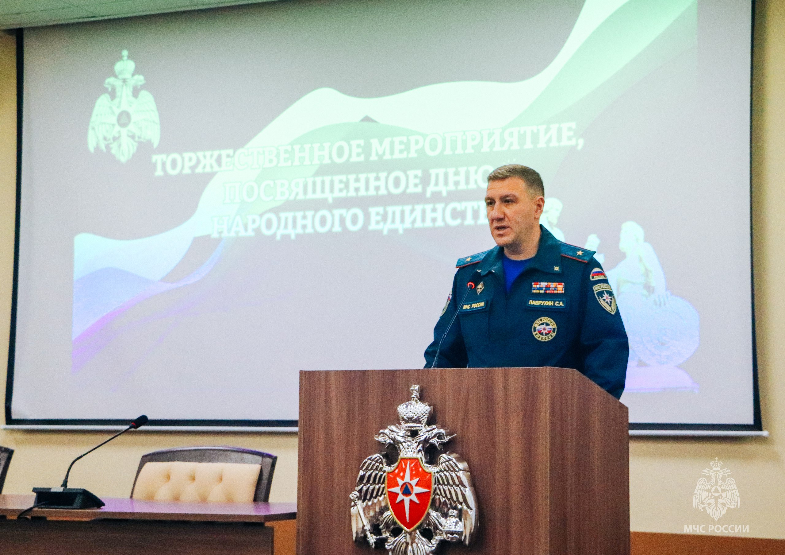 С поздравительной речью перед сотрудниками и ветеранами ведомства выступил начальник Главного управления Сергей Лаврухин: «Каждый из вас ежедневно доказывает свою преданность делу, стране и народу, сохраняя при этом приверженность славным традициям, которые были заложены ветеранами службы. Ваши упорство, профессионализм и готовность прийти на помощь в любую минуту вызывают глубокое уважение и восхищение».
