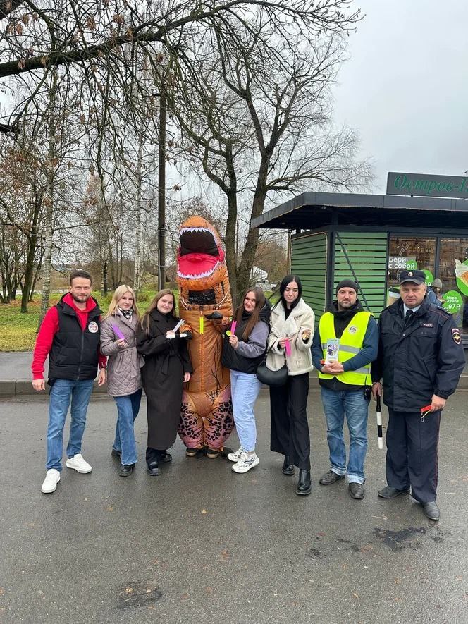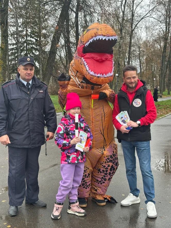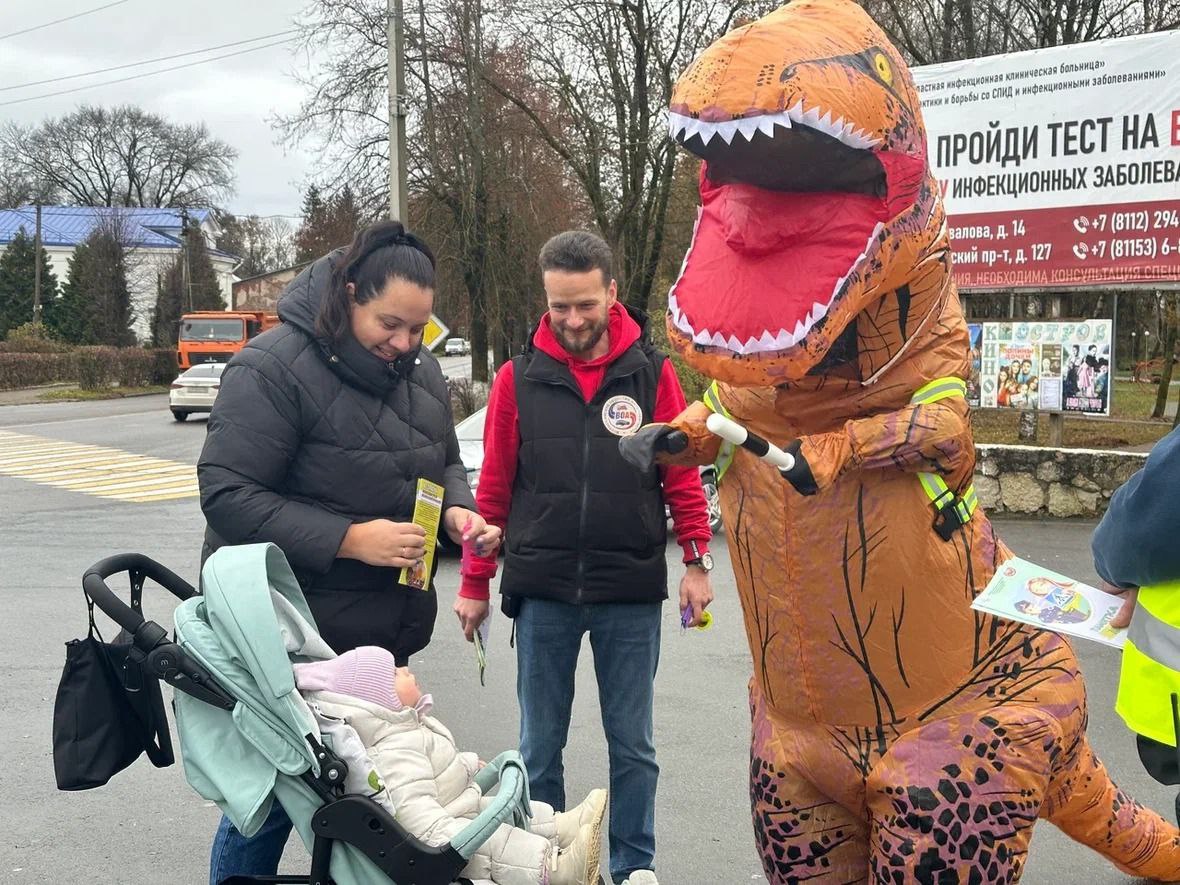 Дорожные полицейские, волонтёры, представители Псковского регионального отделения общественной организации "Всероссийское общество автомобилистов" напомнили участникам дорожного движения о необходимости строгого соблюдения ПДД. Вместе с ними по улицам города прошел участник акции, на котором был ростовой костюм забавного динозаврика.