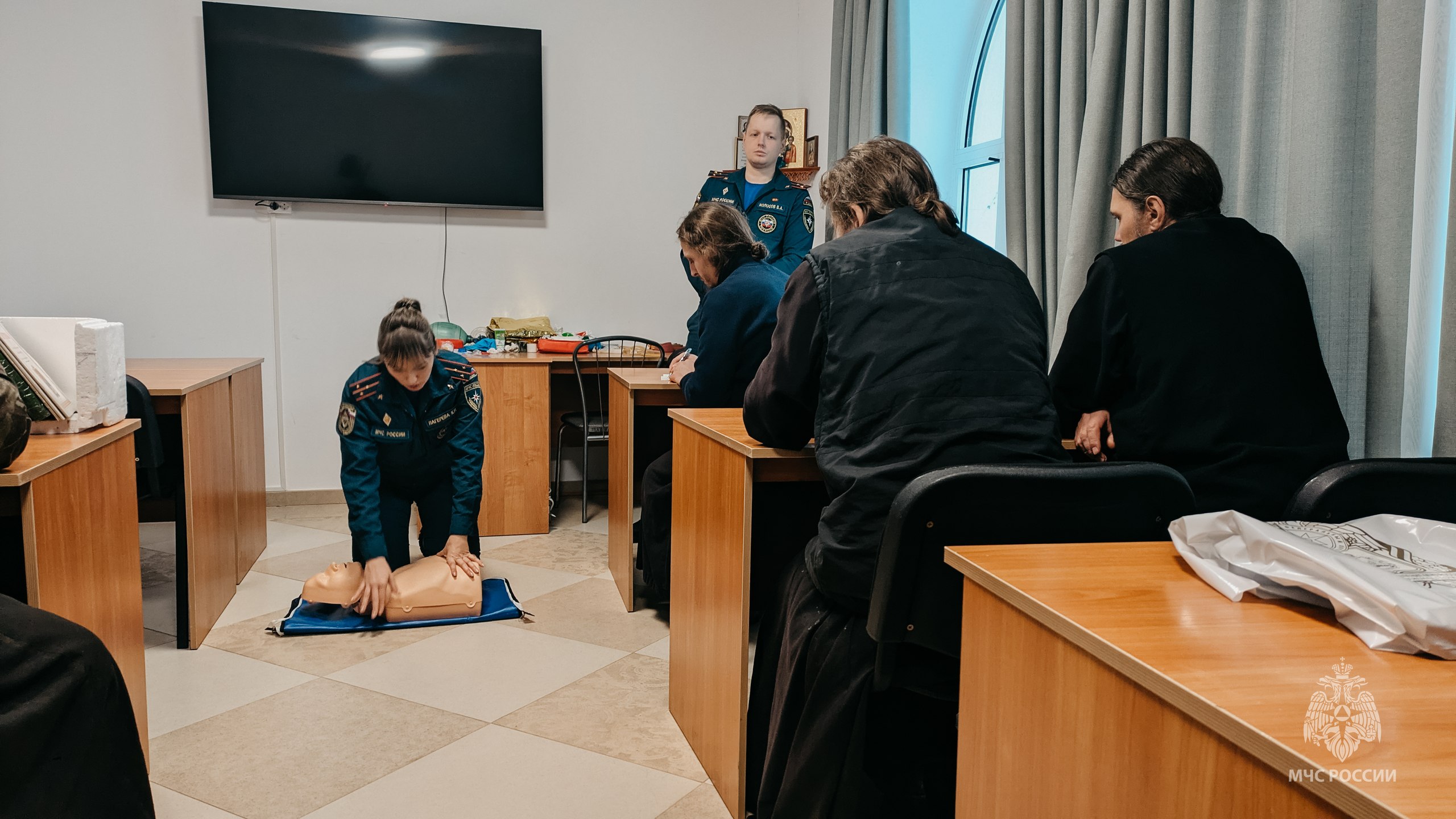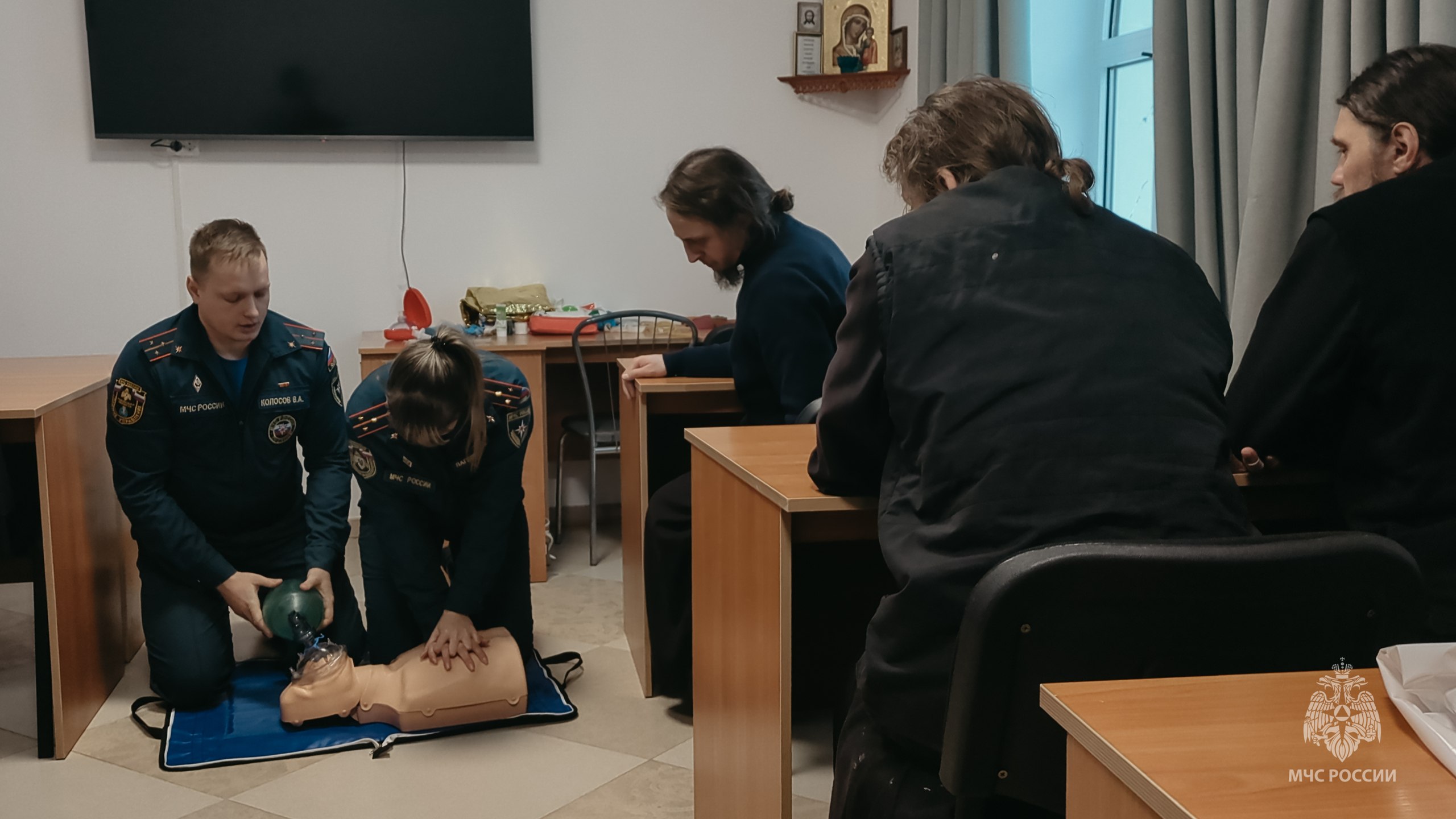 В рамках профессиональной подготовки добровольной пожарной команды Свято-Благовещенской Никандровой пустыни специалистами Главного управления проведено практическое занятие по оказанию первой (доврачебной) помощи.