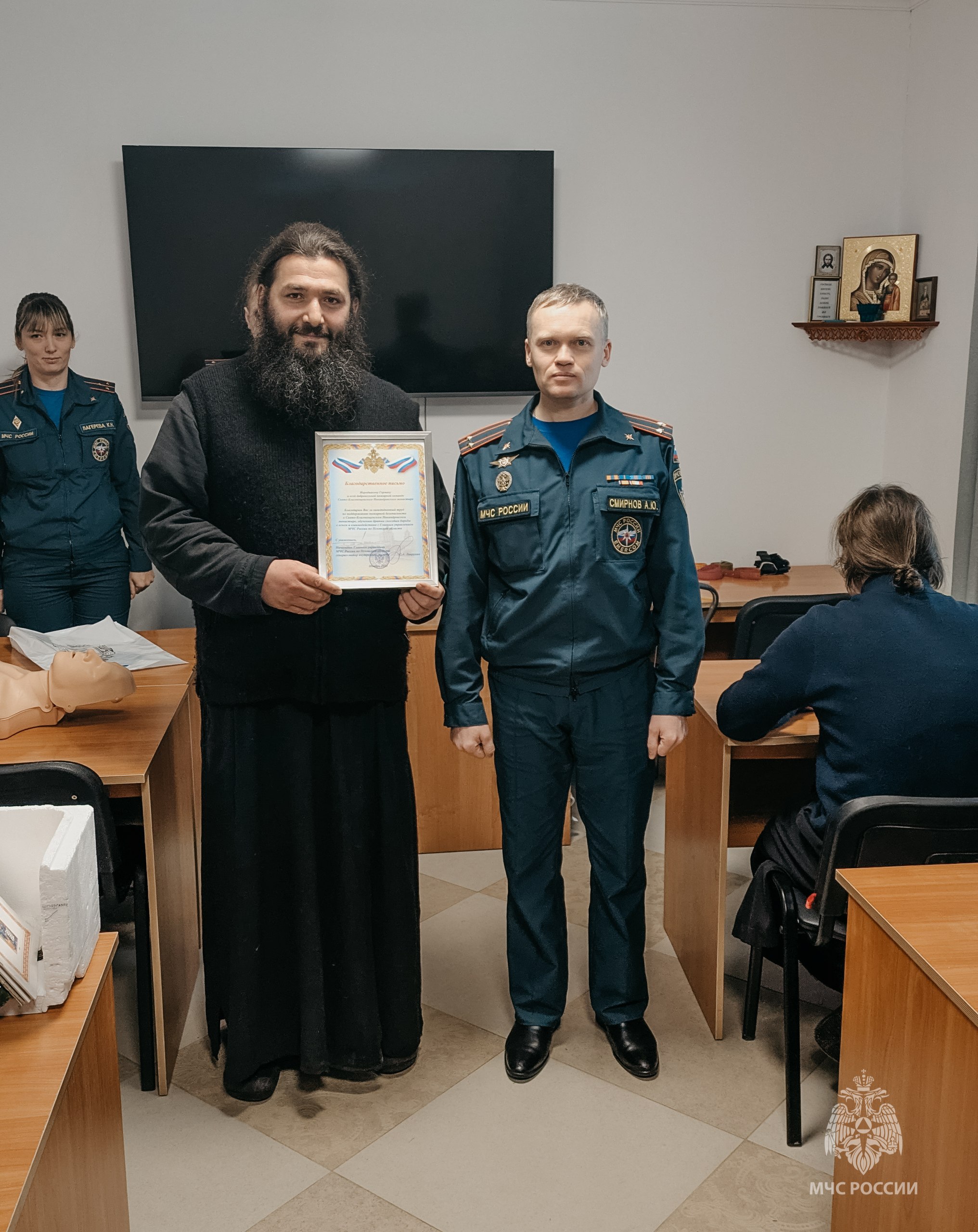 Целью занятия явилось приобретение профессиональных компетенций, необходимых для осуществления деятельности по участию в тушении пожаров, спасению людей и имущества в случае возможных ЧС на территории монастыря. Братия монастыря активно принимала участие в отработке практических приемов оказания первой помощи, которые могут пригодиться как в тушении пожара так и при повседневной жизни.