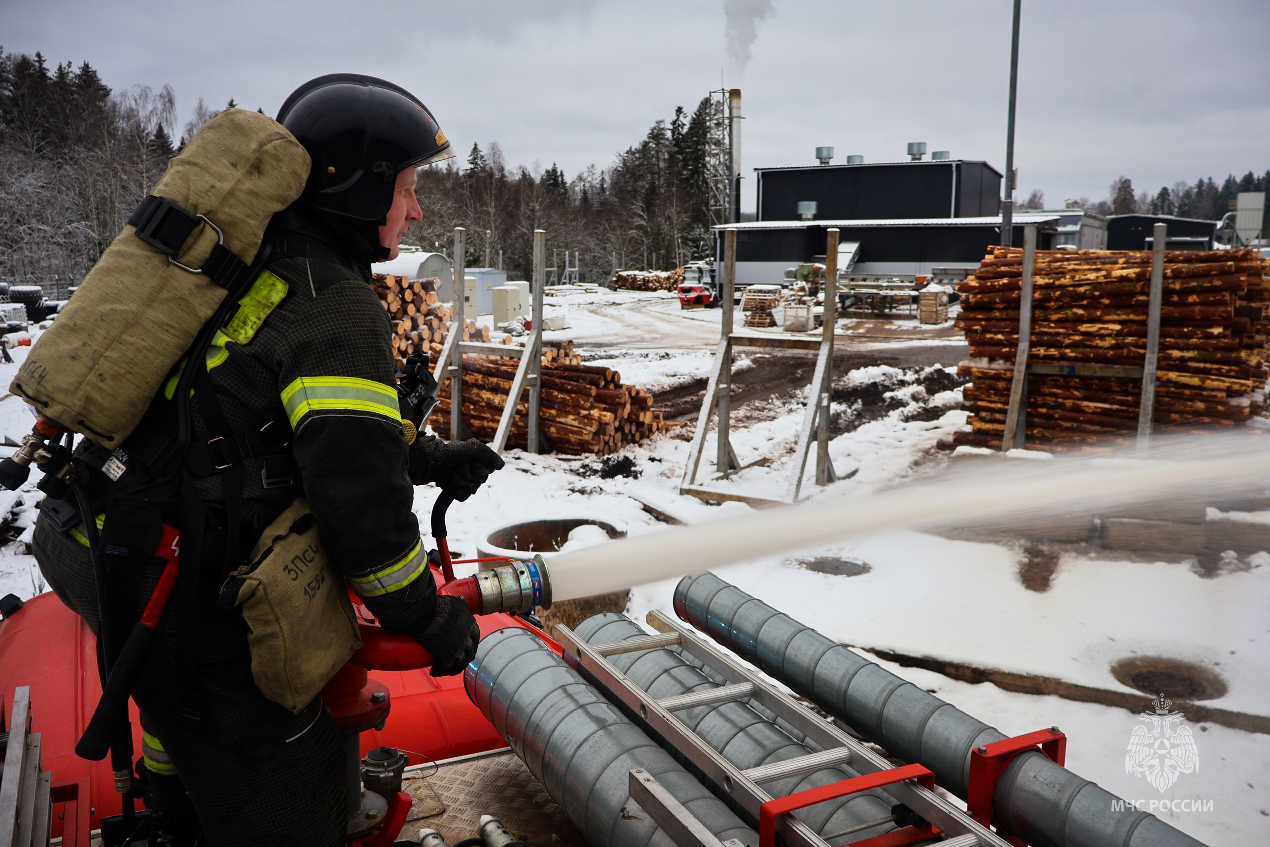 Сегодня на территории деревообрабатывающего предприятия прошли пожарно-тактические учения.