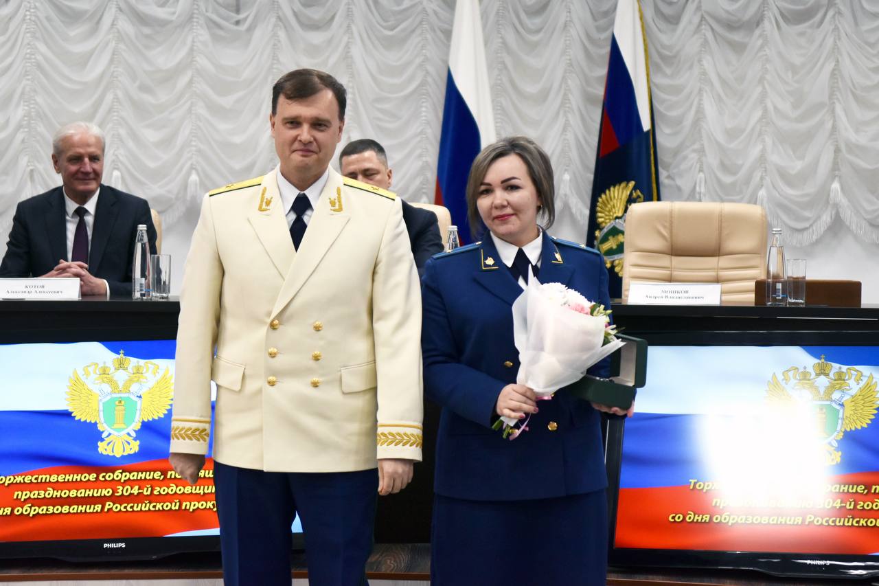 От имени Генерального прокурора Российской Федерации вручены государственные и ведомственные награды, включая нагрудный знак «За безупречную службу», знаки отличия «За верность закону» I и II степени, ценные подарки, грамоты и объявлены благодарности.