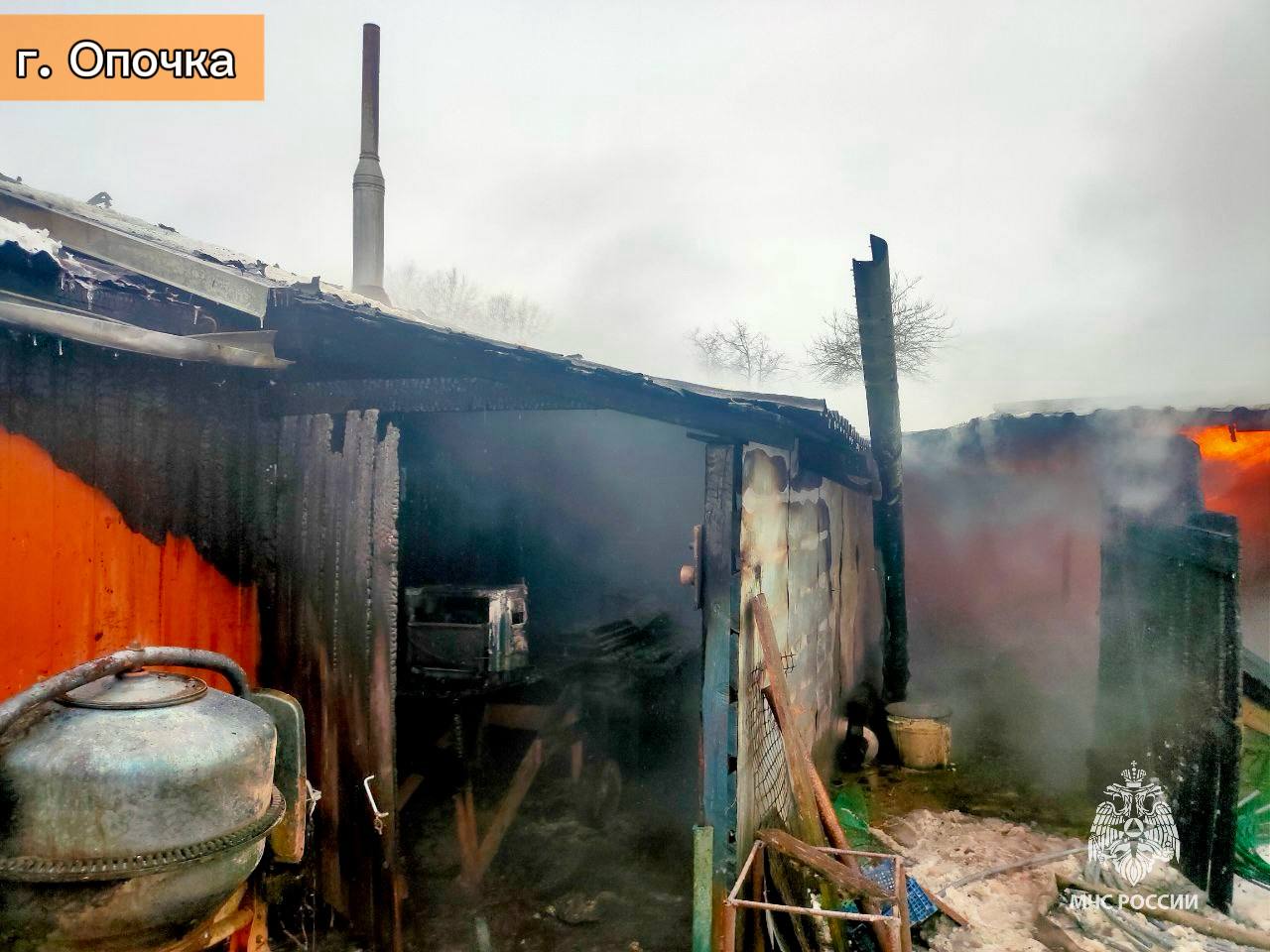 В 11:19 поступило сообщение о возгорании в хозяйственной постройке на улице Романенко в Опочке. Сгорела кровля и хозяйственная постройка. Причиной, предварительно, стало короткое замыкание электропроводки внутри хозяйственной постройки. На месте работали 5 специалистов МЧС России и 2 единицы техники.
