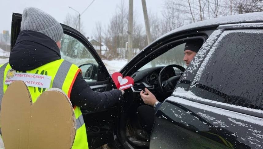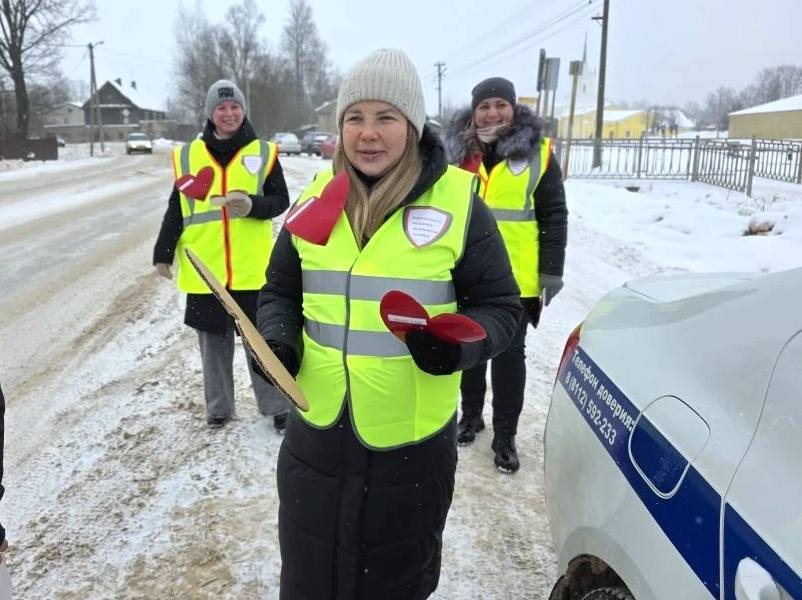 В преддверии Дня всех влюблённых, 14 февраля, «Родительский дорожный патруль» детского сада «Солнышко» в г. Дно Псковской области продолжил свою профилактическую работу.