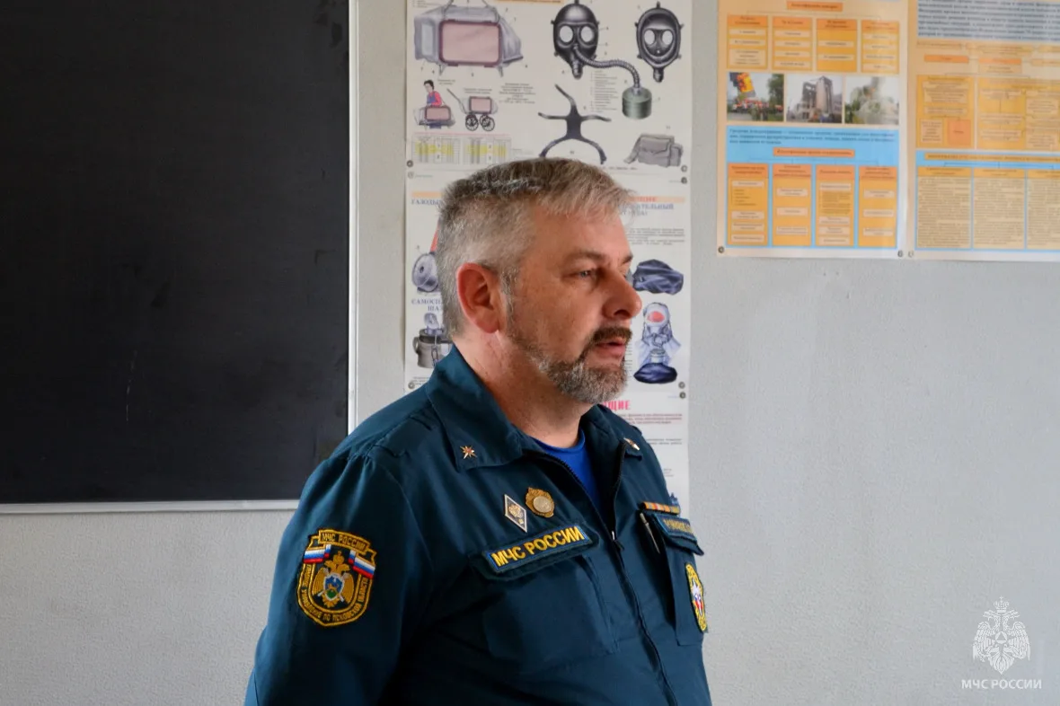 Экскурсия началась с учебного класса, где начальник отдельного поста Александр Романюк рассказал детям о роли пожарных при ликвидации последствий аварии на атомной электростанции.