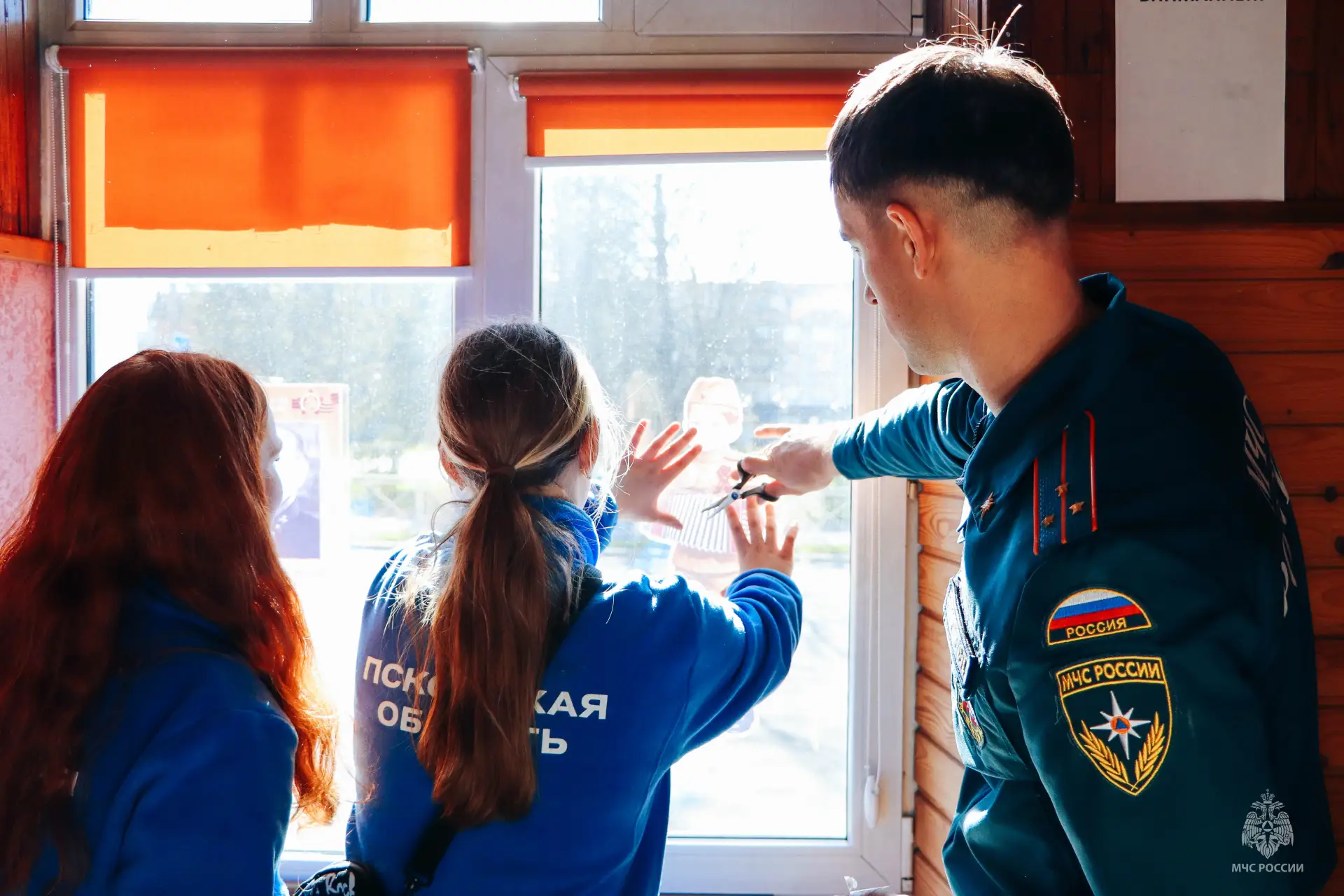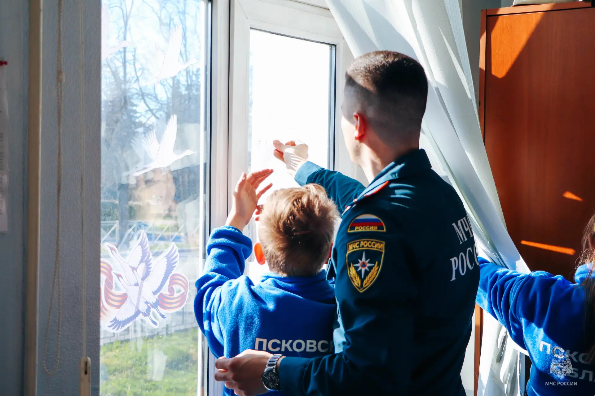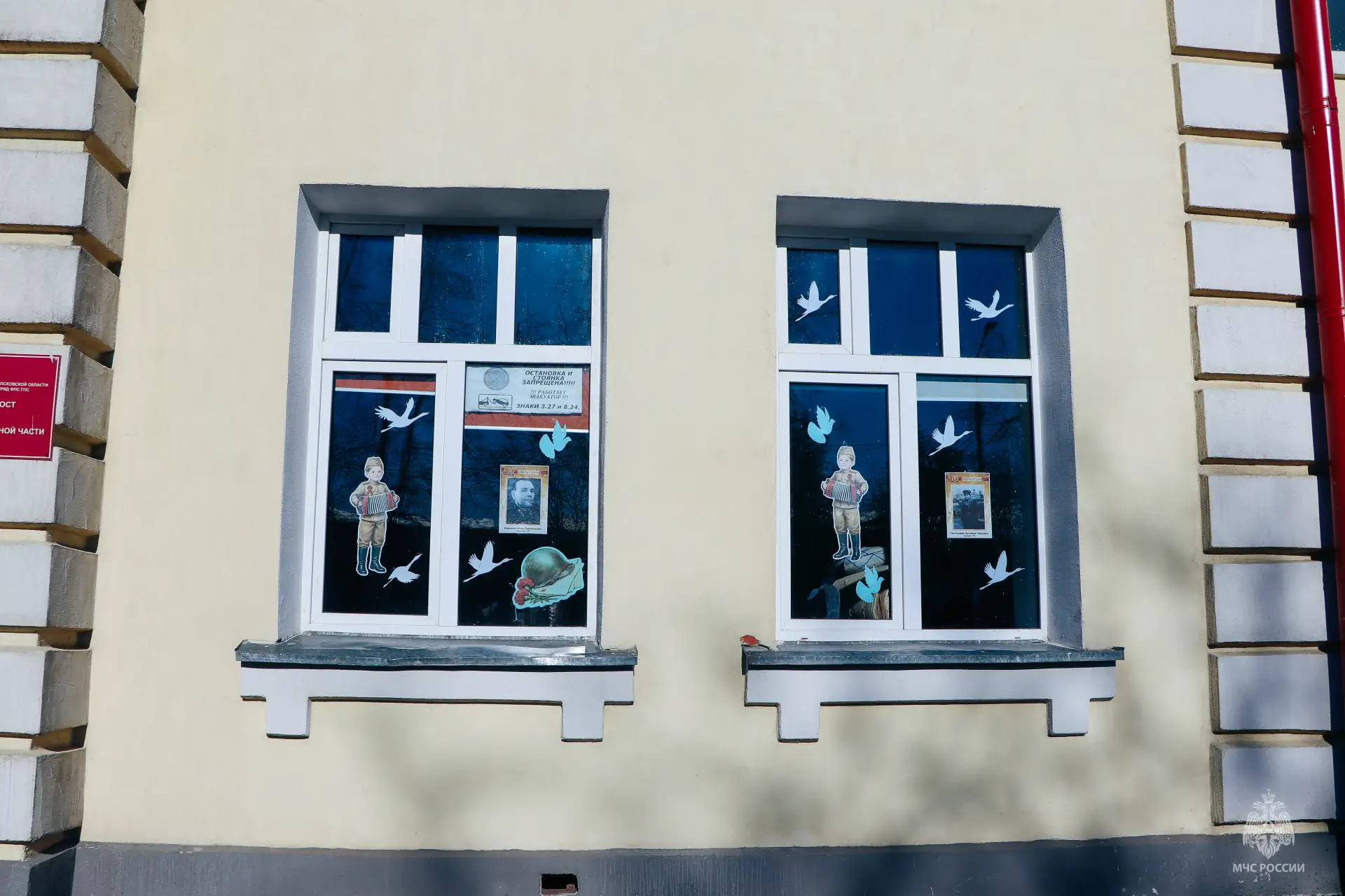 В преддверии празднования Победы в Великой Отечественной войне сотрудники ГУ МЧС России по Псковской области приняли участие в акции «Окна Победы», инициированной Российским движением детей и молодёжи (РДДМ) «Движение первых».