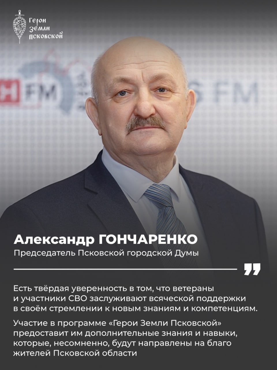 Таким мнением поделился Александр Гончаренко, председатель Псковской городской Думы. Он высоко оценил интерес к программе: «Более 300 человек подали заявки. Среди них – действующие военнослужащие, ветераны СВО и награжденные за мужество. Эти люди отличаются особым характером, высокими требованиями к себе и окружающим, обострённым чувством справедливости».