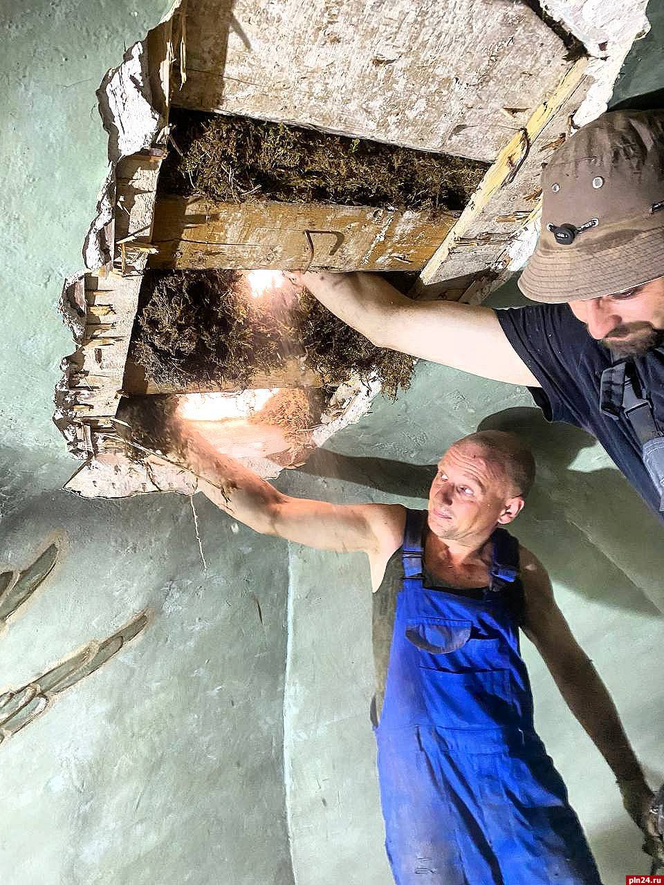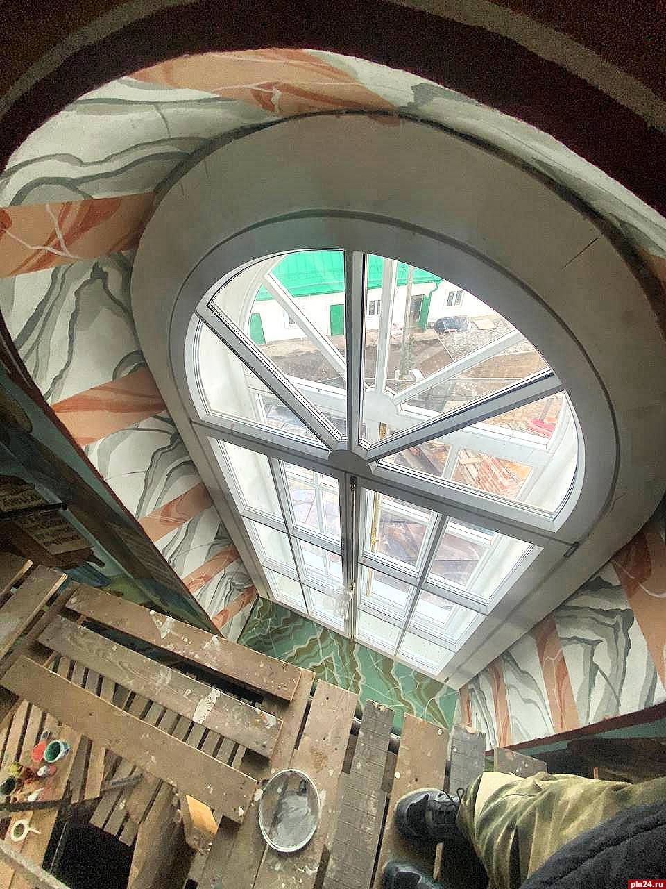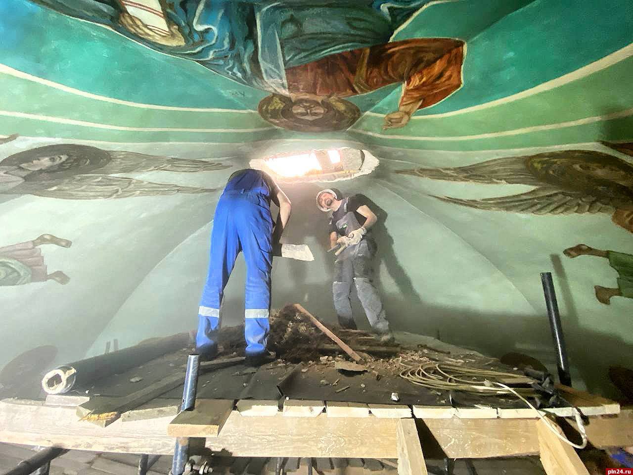 При реставрации печорской церкви в барабане купола обнаружили световые окна