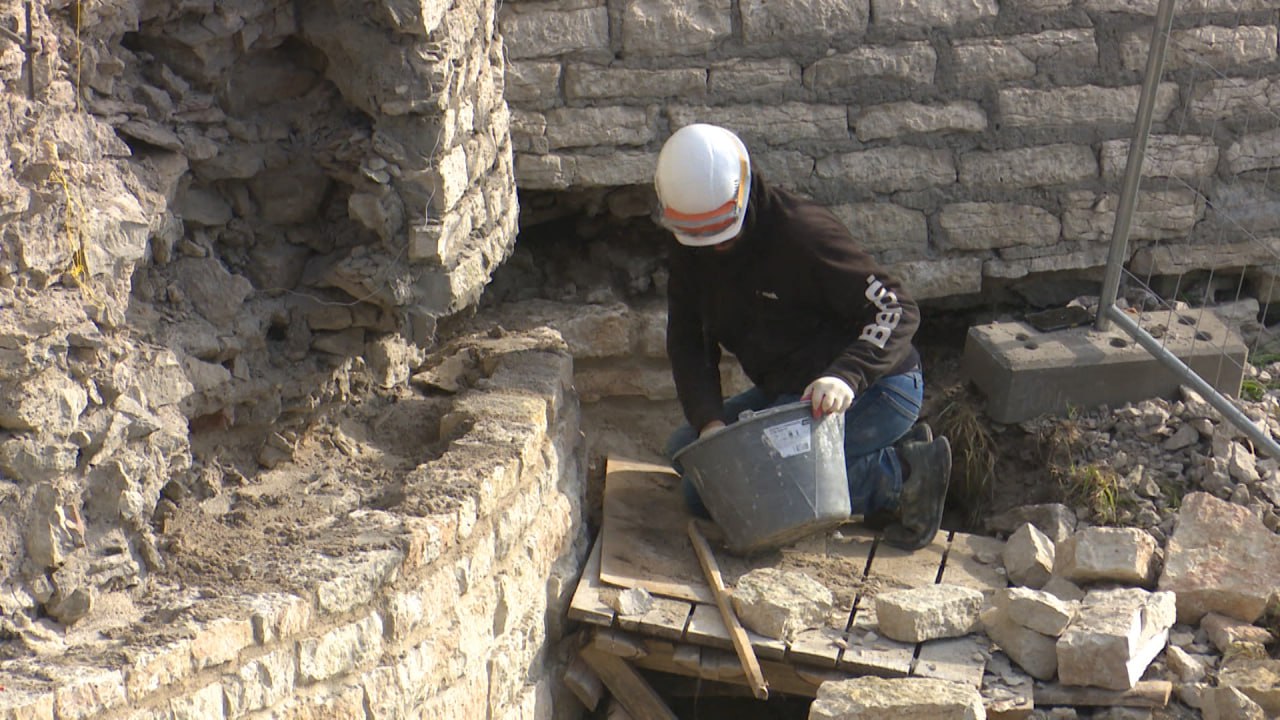 Сверху постоянно сыпались камни. Специалисты собрали и вывезли осыпь, приступили к вычинке каменной кладки. Именно этот участок стены требовалось отремонтировать в первую очередь.