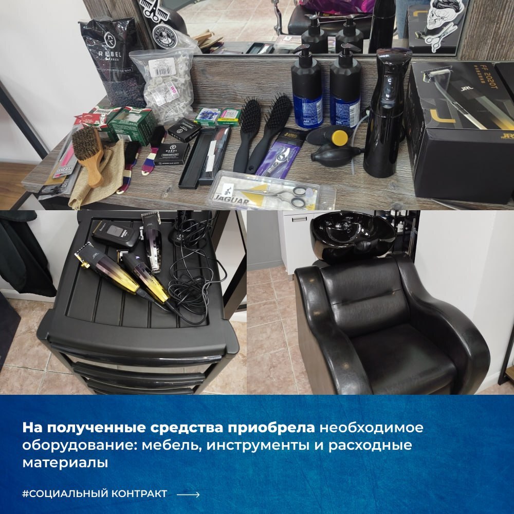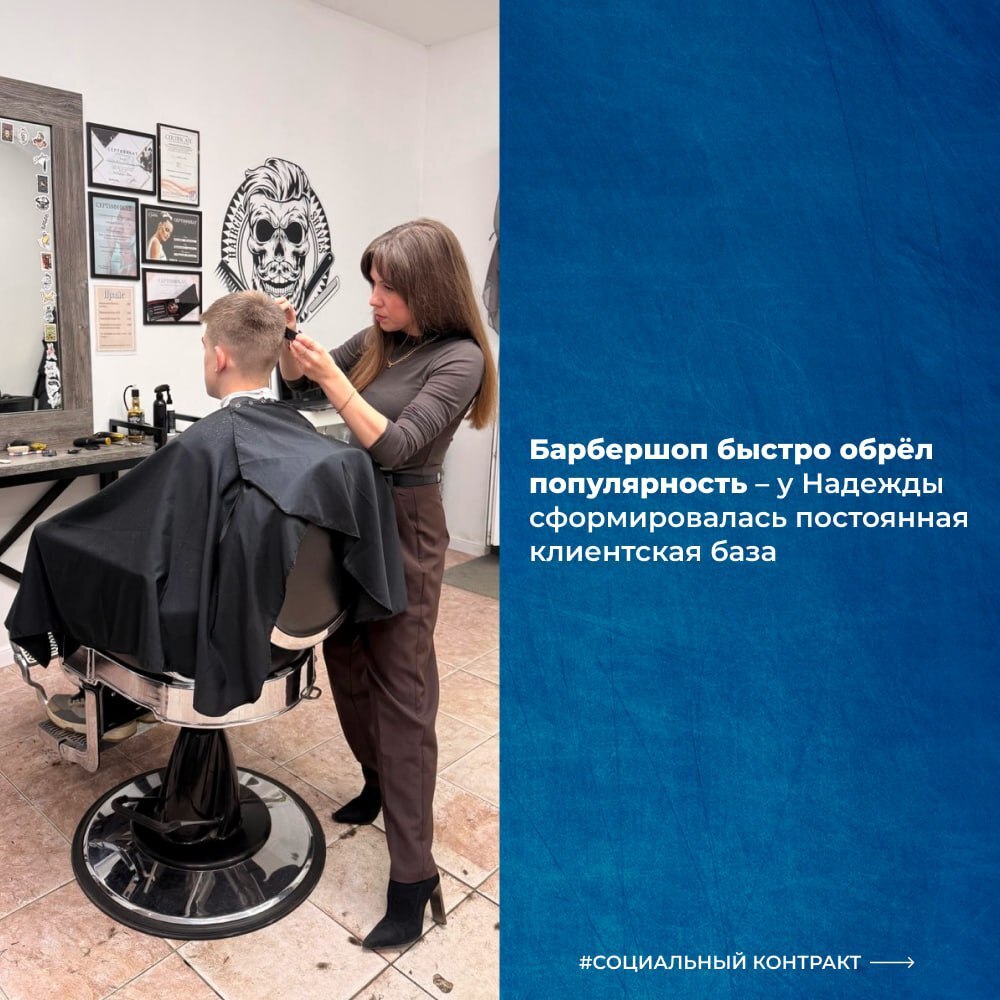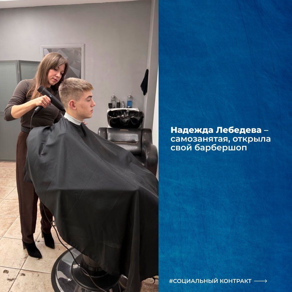 Надежда Лебедева из города Остров всегда мечтала работать в индустрии красоты. Она прошла несколько профессиональных курсов, а затем решилась открыть свой барбершоп. В 2024 году Надежда обратилась за поддержкой по социальному контракту. Государственная помощь позволила приобрести профессиональное оборудование и арендовать помещение для собственного салона. Сегодня её барбершоп успешно работает. У Надежды сформировалась постоянная клиентская база, растёт доход, а любимое дело приносит не только стабильность, но и удовольствие.