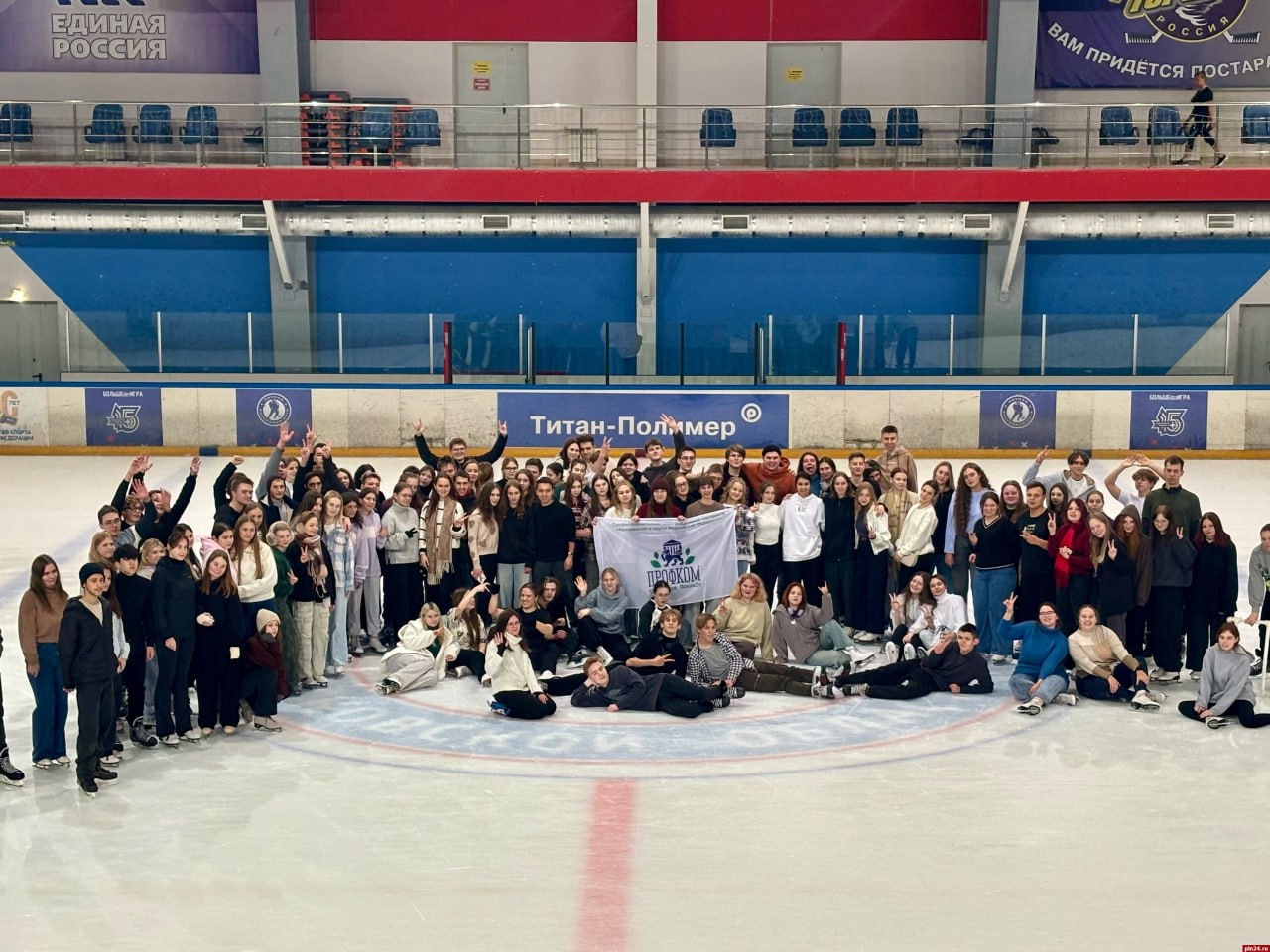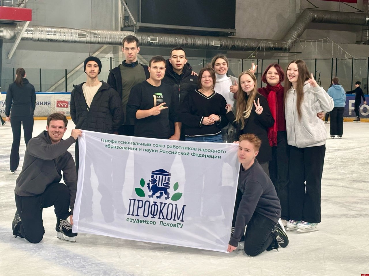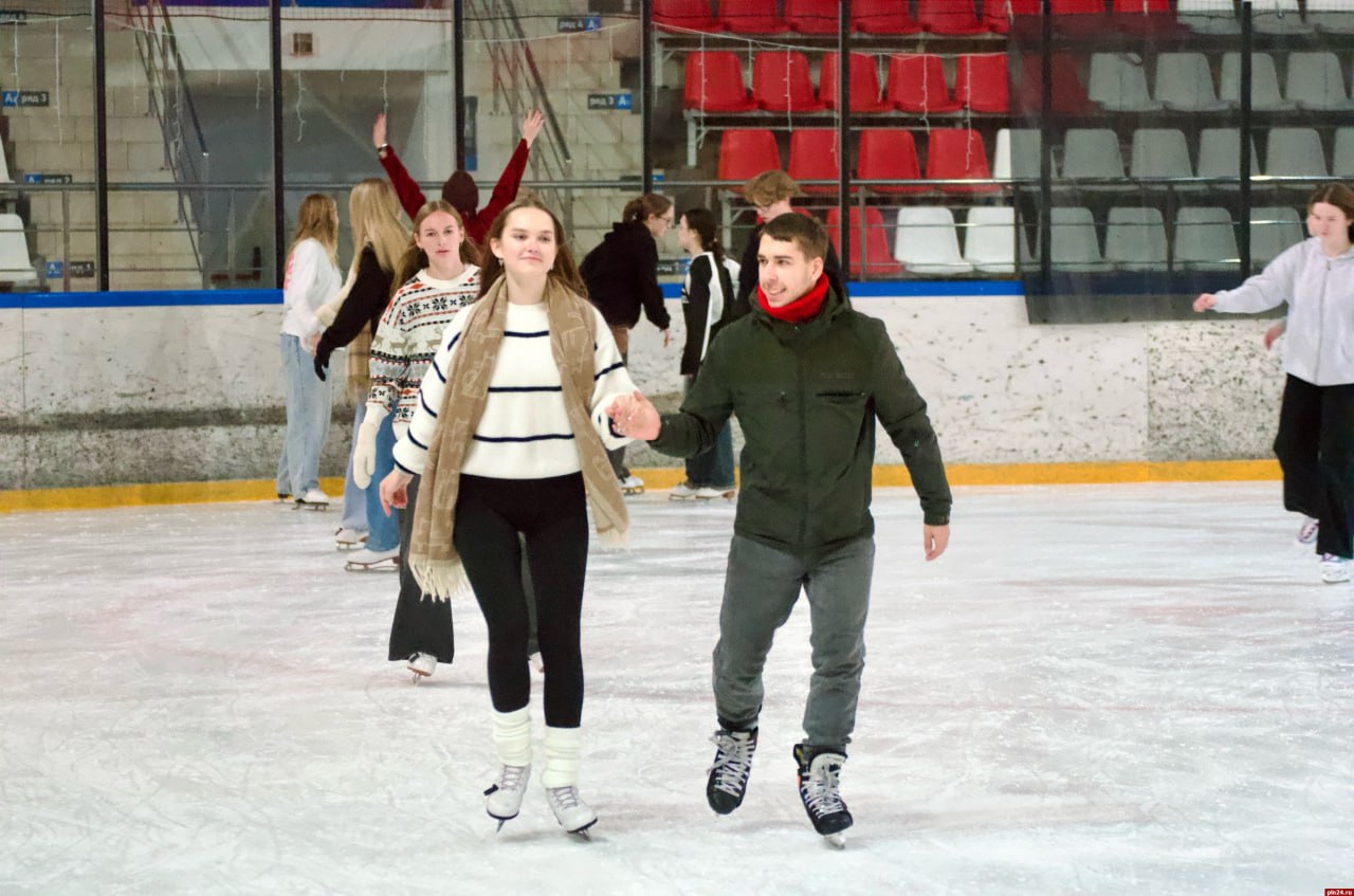 Профком студентов ПсковГУ организовал и провел бесплатное массовое катание на льду в Ледовом дворце, собравшее десятки студентов.