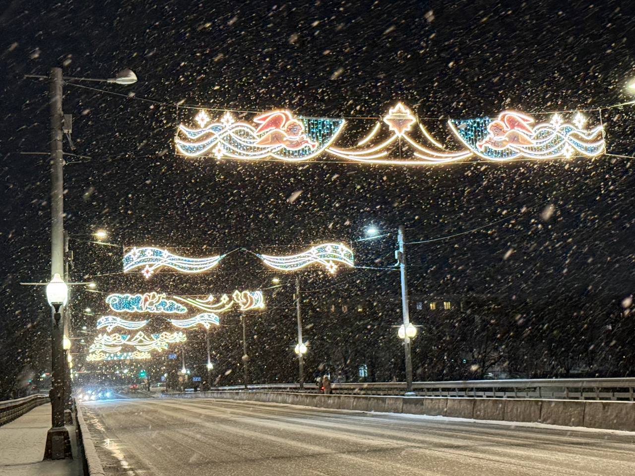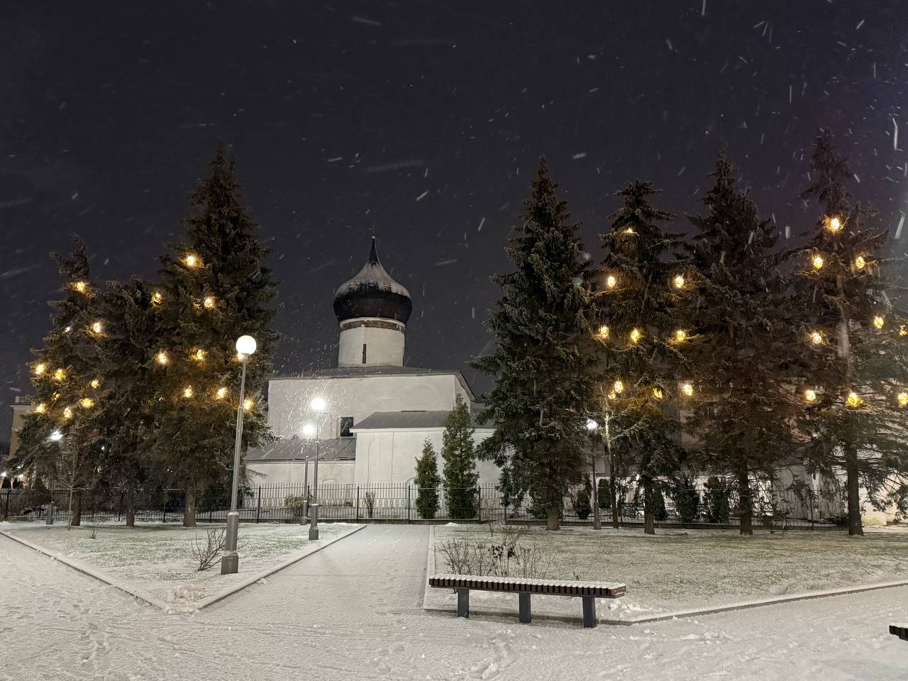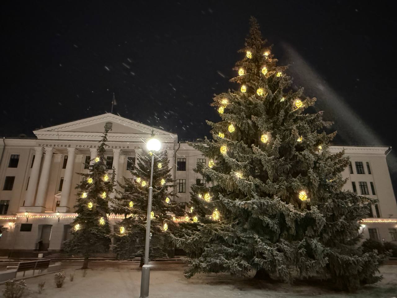 Псков продолжают украшать к Новому году. На площади Ленина появились новые рождественские фигуры – ангелы