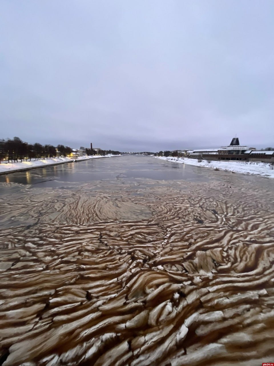 Фотофакт: Снежура образовалась на водяной глади реки Великой
