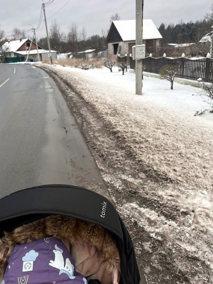 Псковские мамы жалуются на обочину с ледяной коркой
