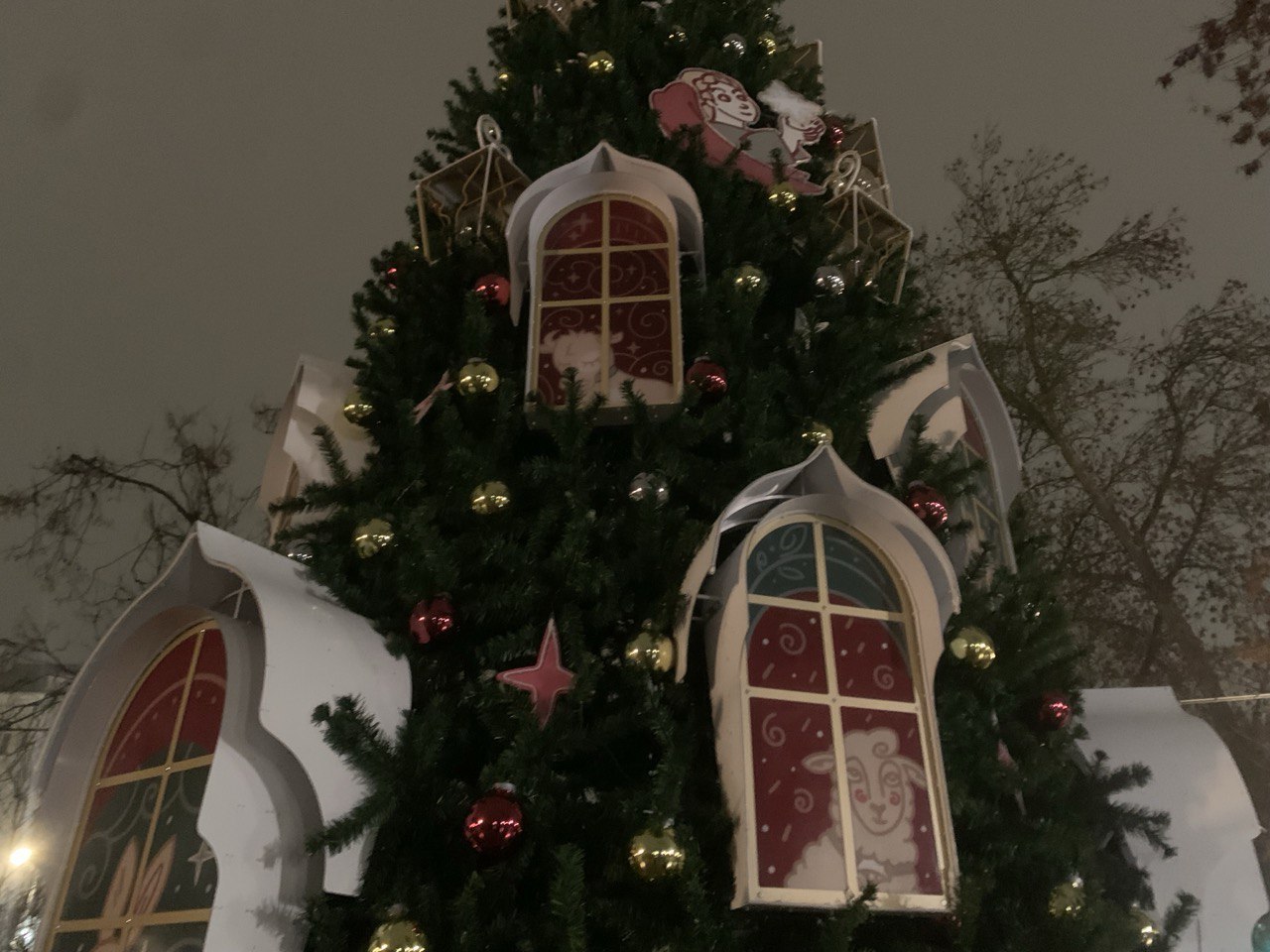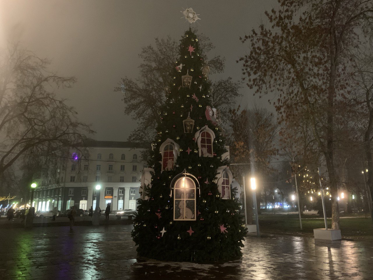 Она стала частью украшений, появляющихся в эти дни на улицах для продвижения бренда «Псков - город Рождества». Дерево украшено силуэтами ангелов, окошками со зверями, первыми приветствовавшими рождественское чудо у яслей, венчает елку восьмиконечная Вифлиемская звезда.