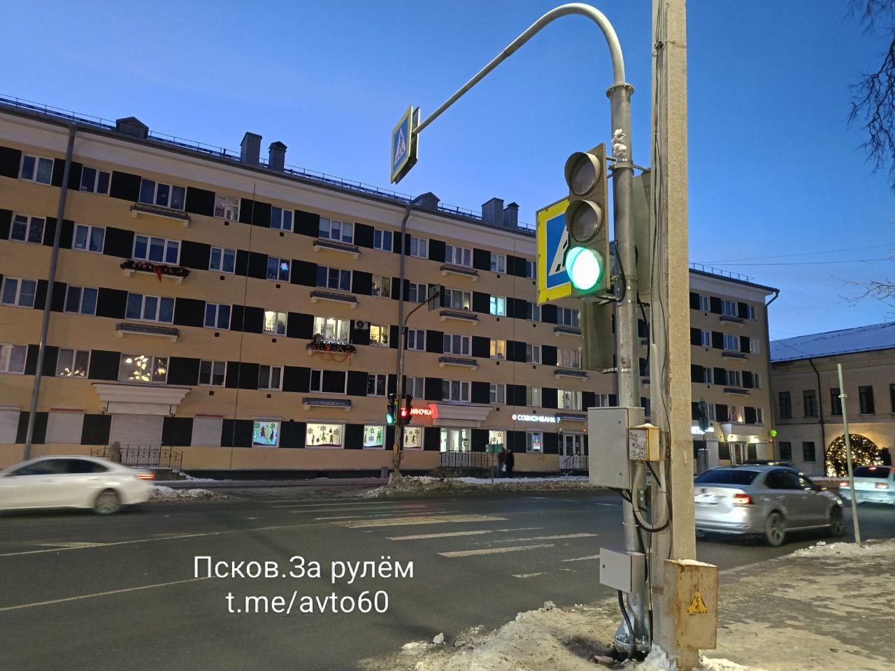 На Октябрьской площади восстановили светофор, сообщили в телеграм-канале "Псков. За рулем"