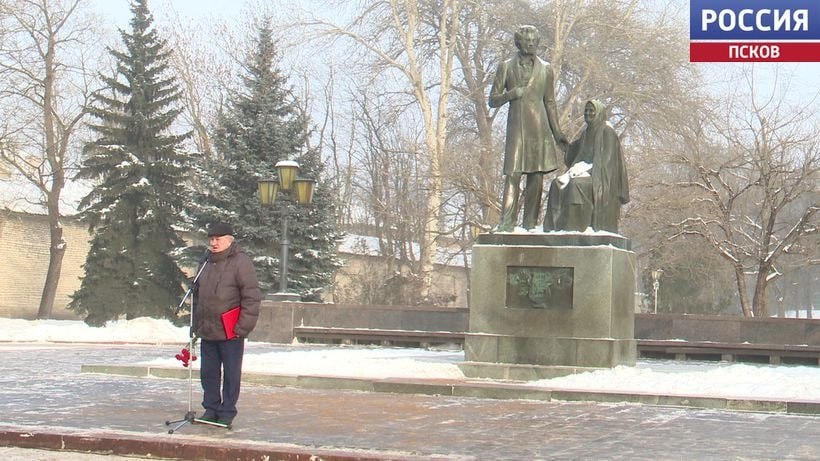В Пскове у памятника "Пушкин и крестьянка" состоялся торжественно-траурный митинг