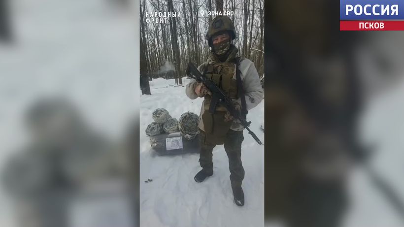 - Мы, бойцы группировки войск "Север" благодарим за предоставленные маскировочные сети милых женщин-красавиц из Локнянского района. От лица боевых товарищей хочу поблагодарить Народный фронт города Пскова за предоставленную нам поддержку. Всех псковичей и неравнодушных людей. Хочется поблагодарить детей из Палкинской школы. Спасибо вам большое за вашу любовь, доброту и тепло.