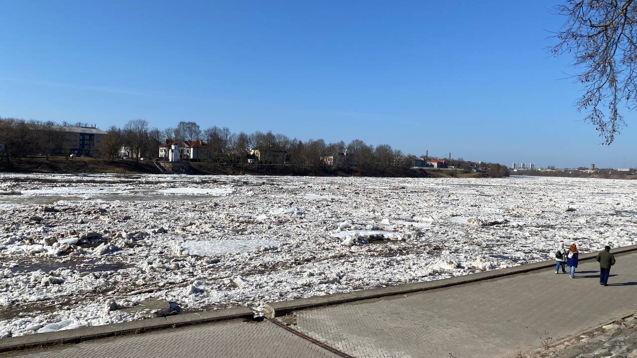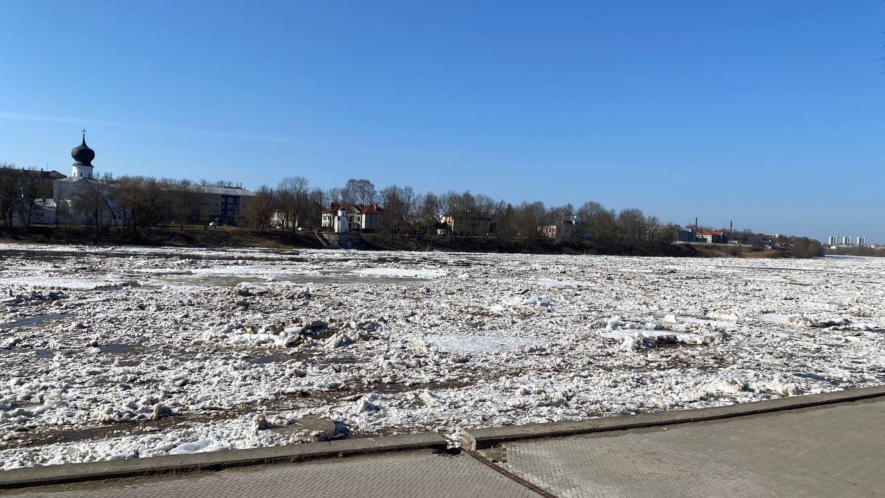 Лёд тронулся на реке Великой в Пскове