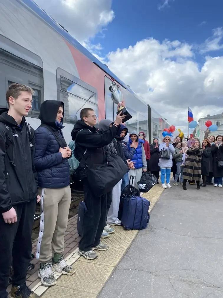Сегодня на железнодорожном вокзале торжественно встретили команду Псковского гуманитарного лицея — серебряных призёров Суперфинала Школьной баскетбольной лиги «КЭСБАСКЕТ»!