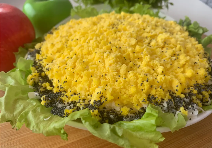 После сборки салат можно украсить по своему усмотрению. Чаще всего используется мак или зелень для дополнительного визуального эффекта. Когда все готово, желательно дать салату немного настояться – это позволит ингредиентам лучше пропитаться и стать более вкусными.
