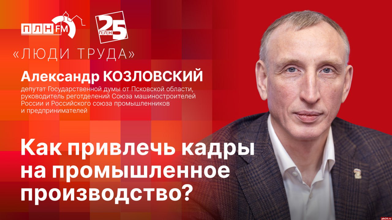 Сегодня гость студии – депутат Госдумы от Псковской области, секретарь регионального отделения партии «Единая Россия», руководитель региональных отделений Союза машиностроителей России и Российского союза промышленников и предпринимателей Александр Козловский.