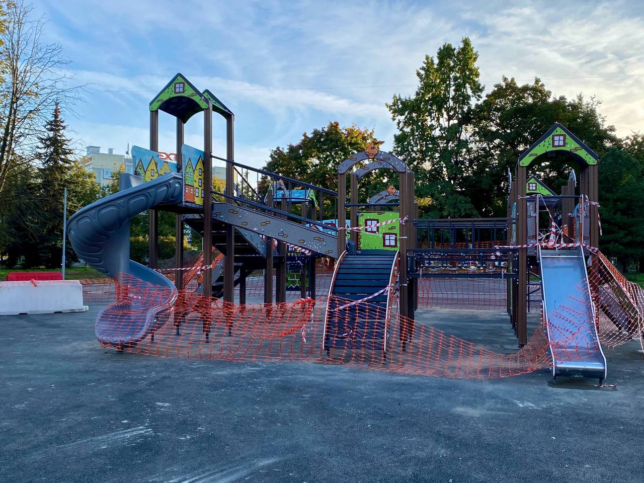 Отдельно обращаюсь к родителям! Новый игровой комплекс пока не введён в эксплуатацию. Убедительно прошу не разрешать детям им пользоваться – мы должны завершить работы и сделать площадку полностью безопасной.