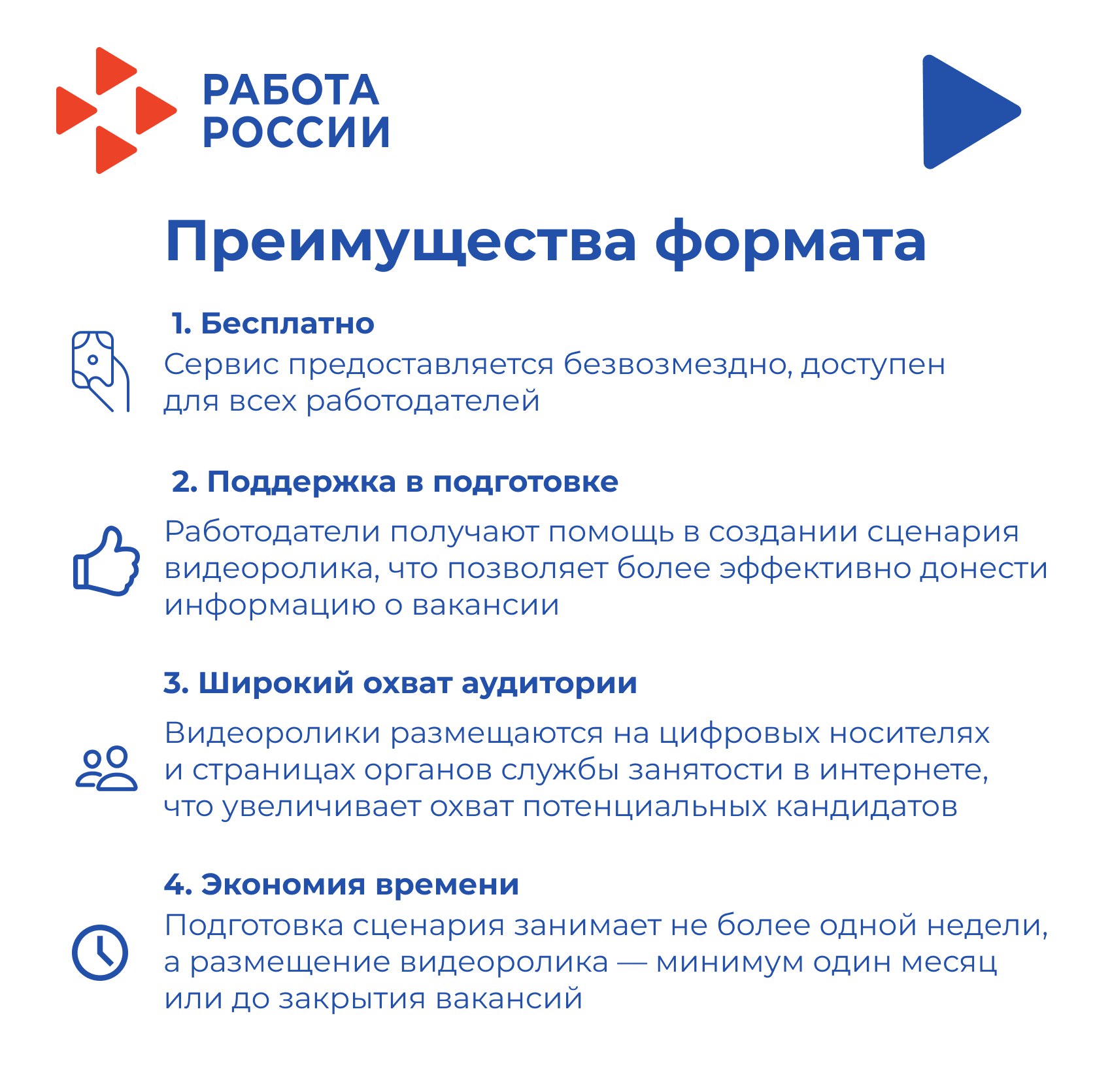 Информируем о возможностях сервиса «Содействие работодателю в размещении и подготовке сценария видеовакансии»