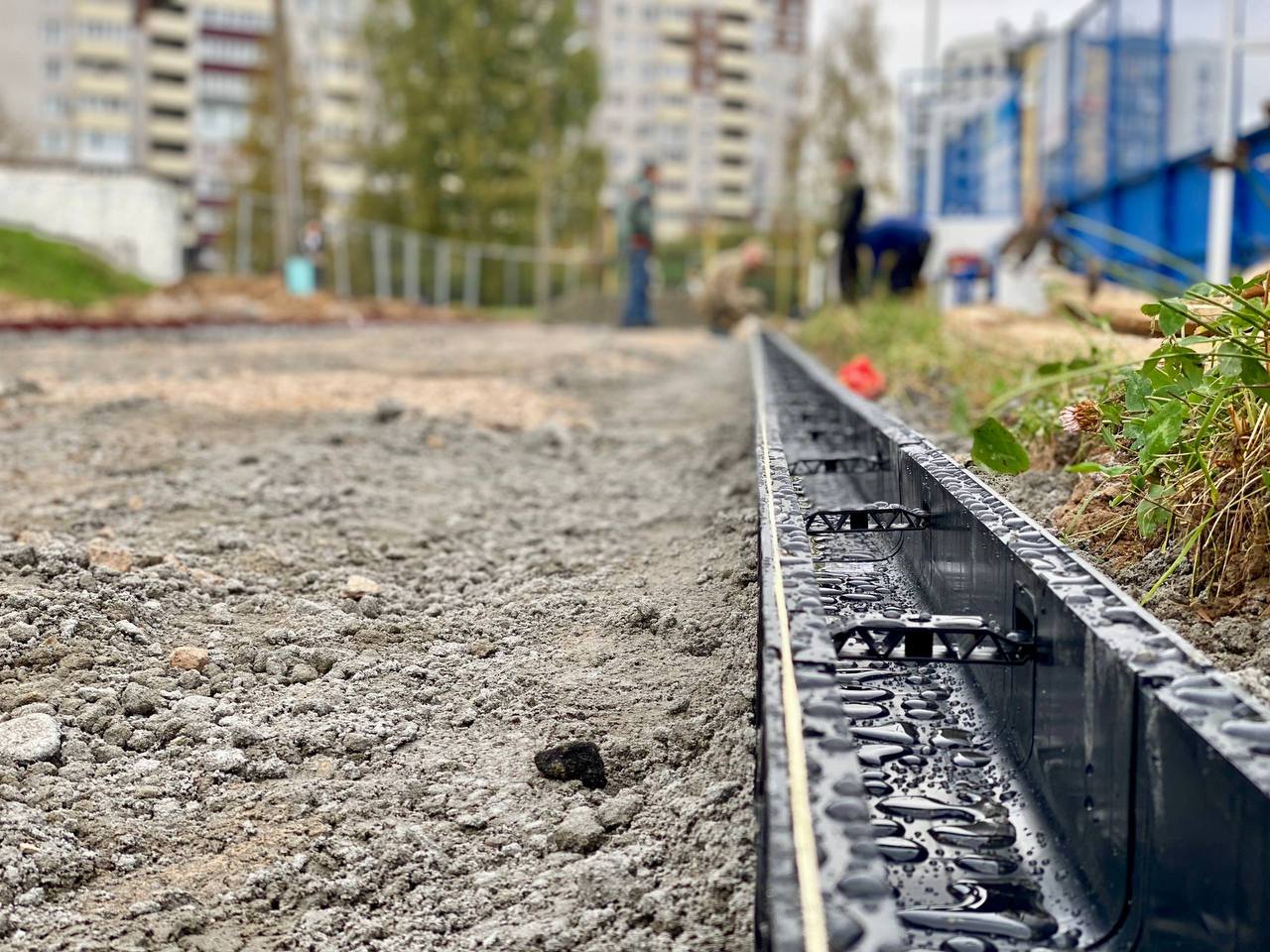 Работы идут по графику, строители трудятся в усиленном режиме, включая выходные, чтобы уложиться в сроки. Уже готово основание, идёт бетонирование и установка бордюров.