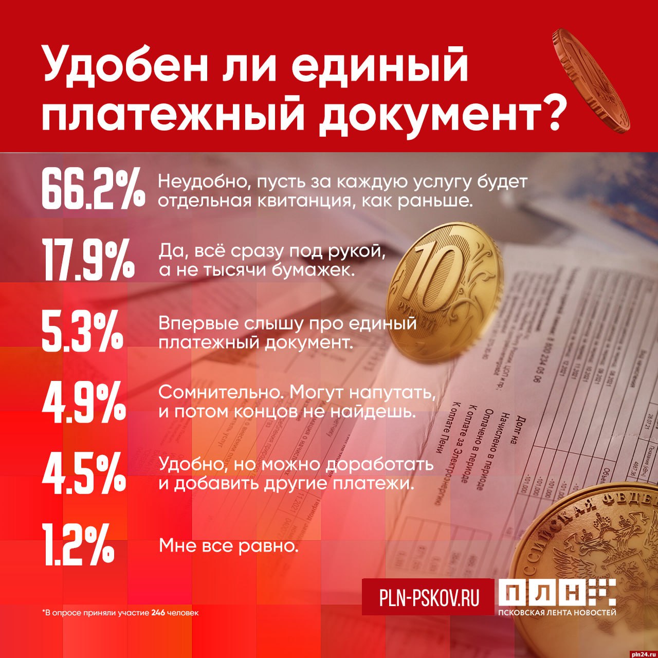 Можно сделать вывод, что итоги демонстрируют явный запрос со стороны псковичей на привычный способ оплаты коммунальных услуг по отдельным квитанциям, который, по их мнению, является более простым и надежным.