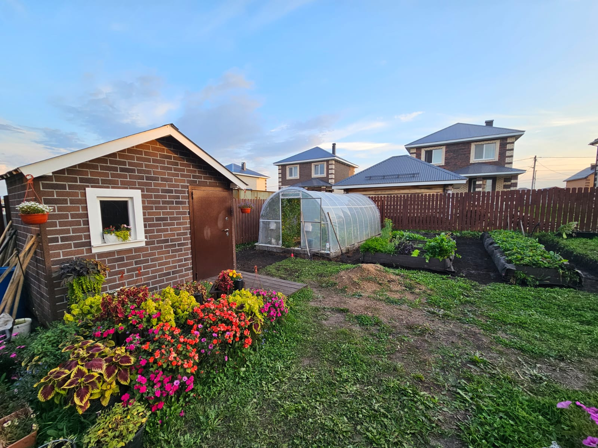 На сегодняшний день участок включает четыре грядки размером 2 на 1 метр, одну длинную грядку длиной 6 метров и простую теплицу, накрытую пленкой. Важно отметить, что грядки изготовлены из древесно-полимерного композита (ДПК), и их установка была продумана до мелочей — так, чтобы плитка успешно вписалась в общий дизайн.