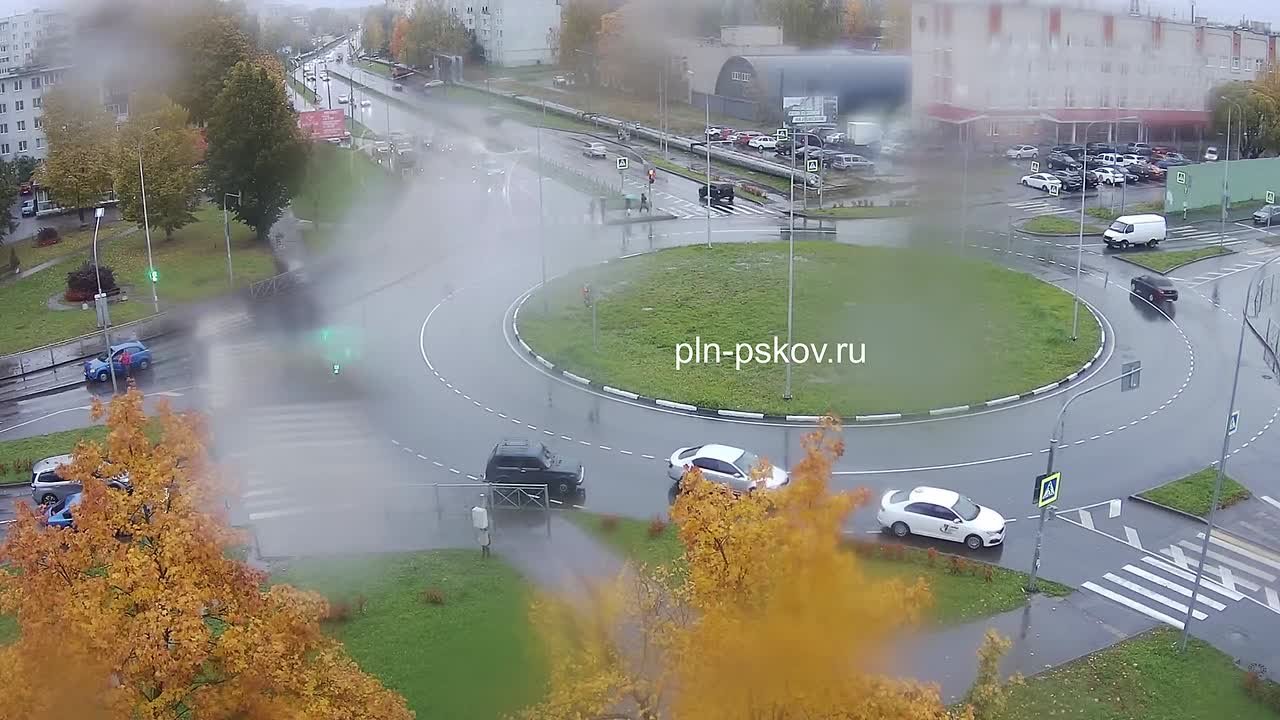 Водитель Kia Rio застряла на разделительной полосе перекрестка в Пскове
