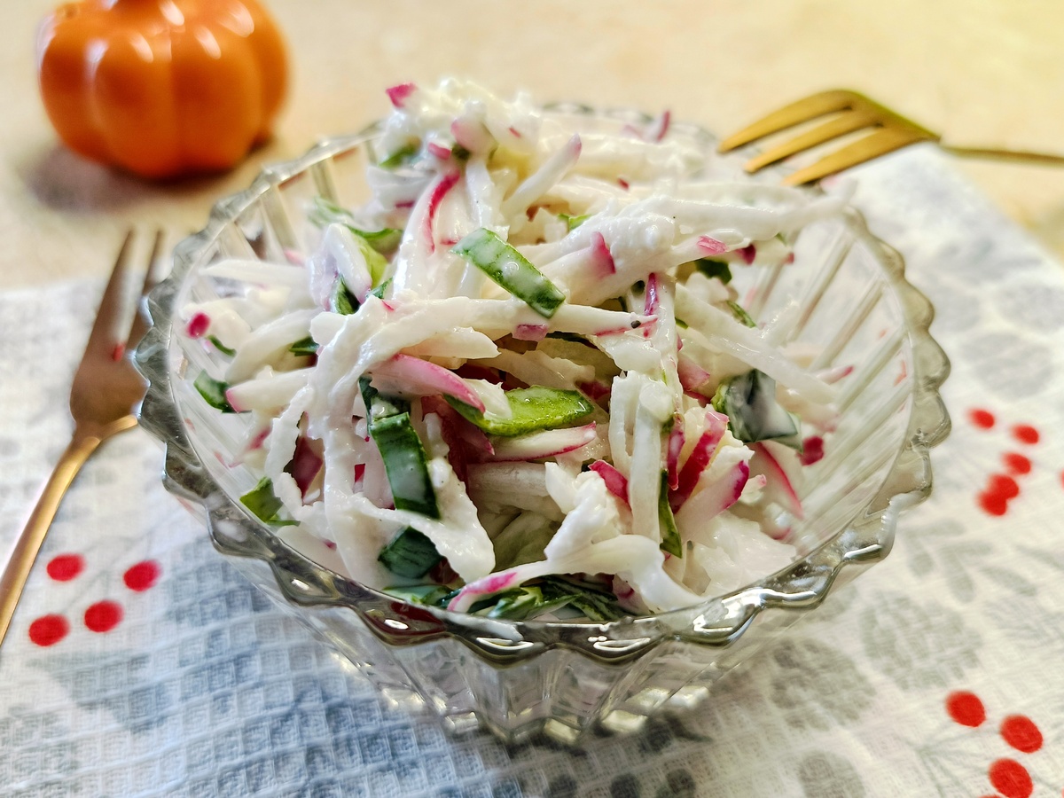 Салат из редиски — это не просто яркое дополнение к вашему столу, это настоящий взрыв свежести и вкуса! Хрустящие ломтики редиса и нежный зеленый лук, смешанные со сметаной, создадут великолепное сочетание, которое идеально подойдет как для обеда, так и для ужина.