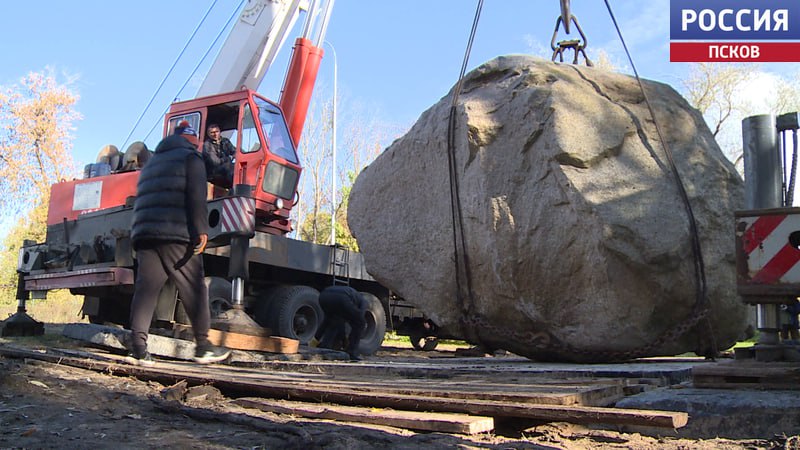 Постамент под памятник князю Довмноту установили в Пскове. 70-тонный древний валун нашли в Псковском районе и доставили на место спецтранспортом. Специалистам предстоит еще немного его обработать, чтобы бронзовый памятник держался крепко. По предварительным прогнозам, монумент в районе улицы Леона Поземского будет открыт через три недели. Самая главная особенность камня - его антивандальность.