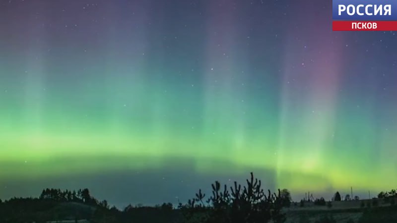 Сразу два красных небесных явления запечатлел псковский астроном Петр Митрофанов. Уже не первый раз в объектив его камеры попадает северное сияние. Бордовые, зеленые, синие цвета переливаются в удивительном сочетании на фоне ночного небосклона, усыпанного звездами.