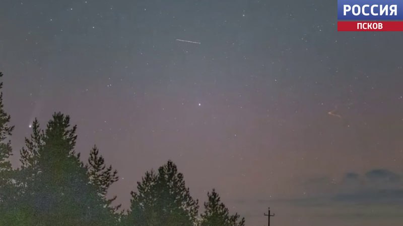 Также недалеко от Изборска удалось заснять яркий метеор, который оставил свой след. Его дрейф хорошо виден на ускоренной съемке.