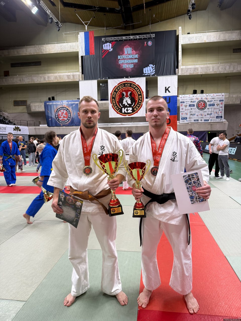 Ещё двое наших спортсменов боролись за золото в финале всероссийского турнира по кудо «К2», который прошёл в Москве. На старте поединка Фёдор Миронов иппоном выиграл у Дмитрия Рогова и завоевал золото. Рогову соответственно досталось серебро.