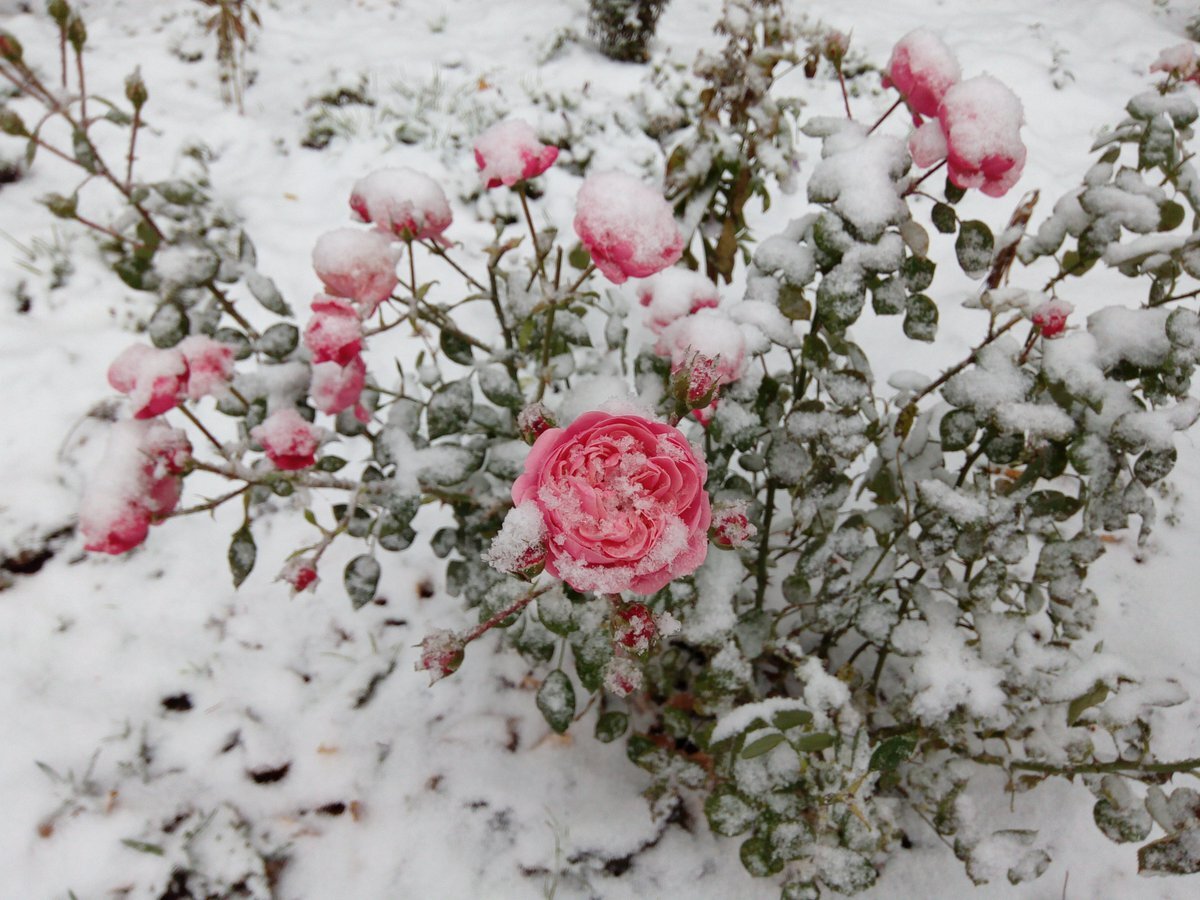 Когда листья упадут, необходимо убрать их из-под кустов и замульчировать землю перегноем. Важно укрывать розы, когда земля начинает издавать звук при ударе — это и есть тот самый сигнал, когда пришло время для укрытия. Так можно гарантировать, что растения перезимуют без потерь.
