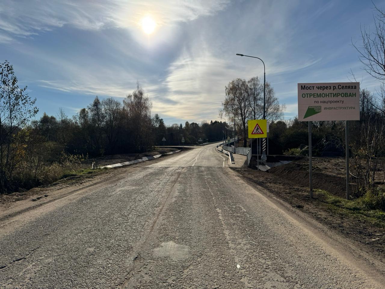 В деревне Высокое завершился капитальный ремонт моста через реку Селяха. Работы проведены в рамках нацпроекта «Инфраструктура для жизни».