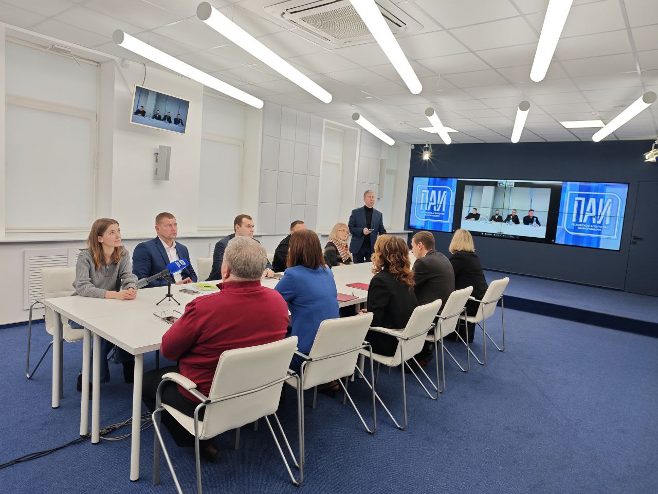 Телемост с государственным холдингом Республики Абхазия проходит в медиацентре ПАИ в рамках VI Псковского международного медиафорума.