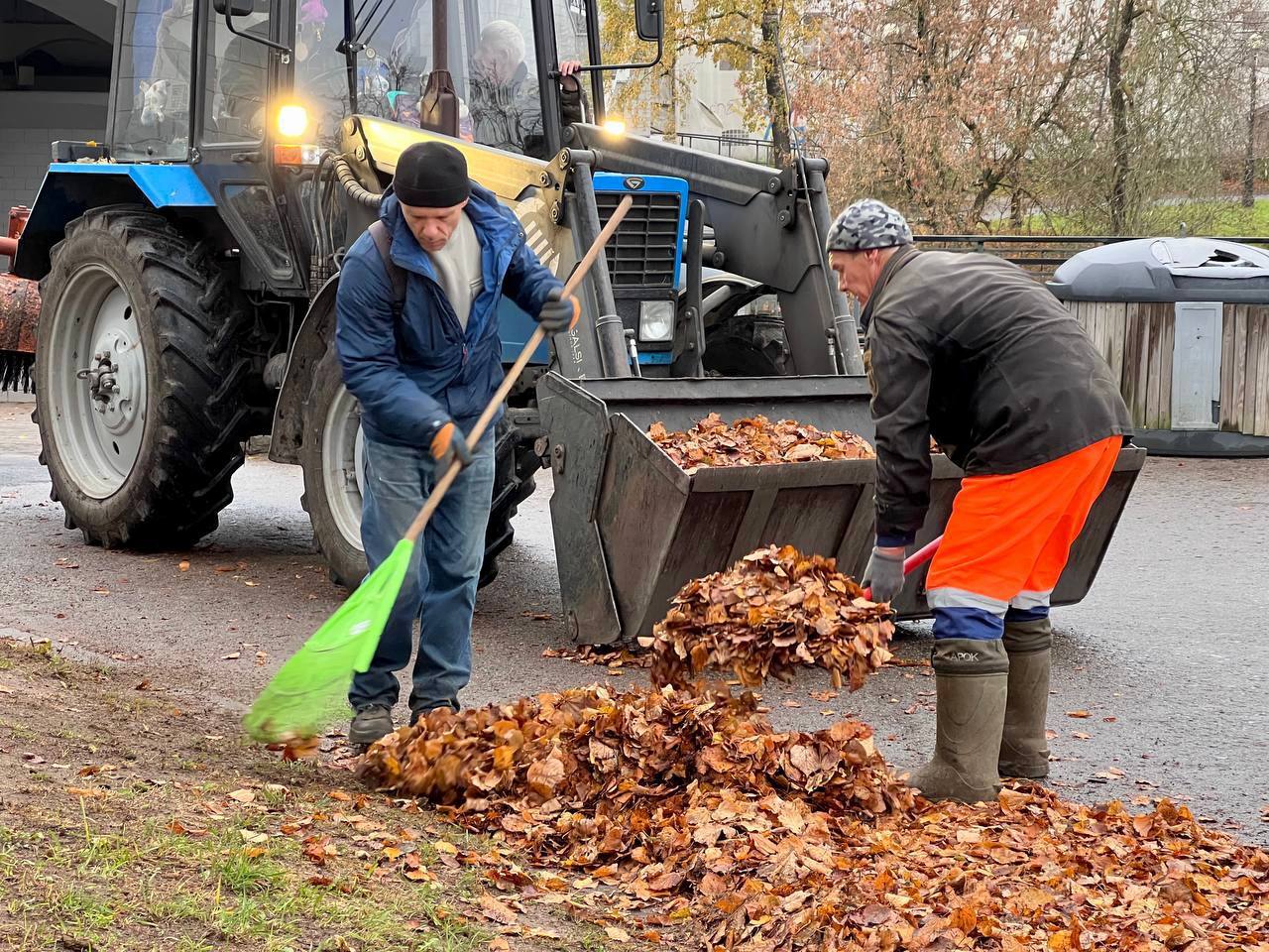 В зависимости от погодных условий используется разнообразная техника. А там, где она не может справиться, на помощь приходит ручной труд. В общей сложности в осенней уборке задействовано около 80 человек и 40 единиц техники.