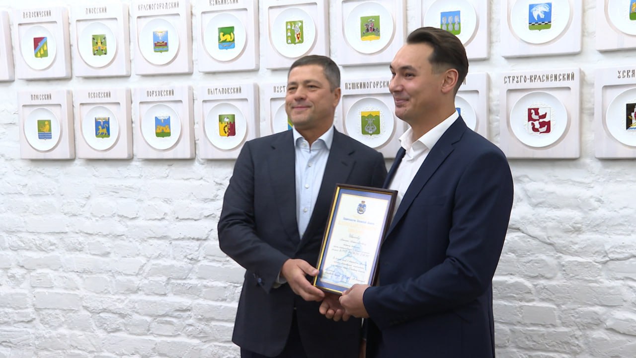 Также наградой отмечена корреспондент "Вестей-Псков" Лариса Чурикова. Михаил Ведерников вручил ей почетную грамоту губернатора области. А ведущий "Вестей" Арсений Иванов получил благодарственное письмо от имени главы региона.