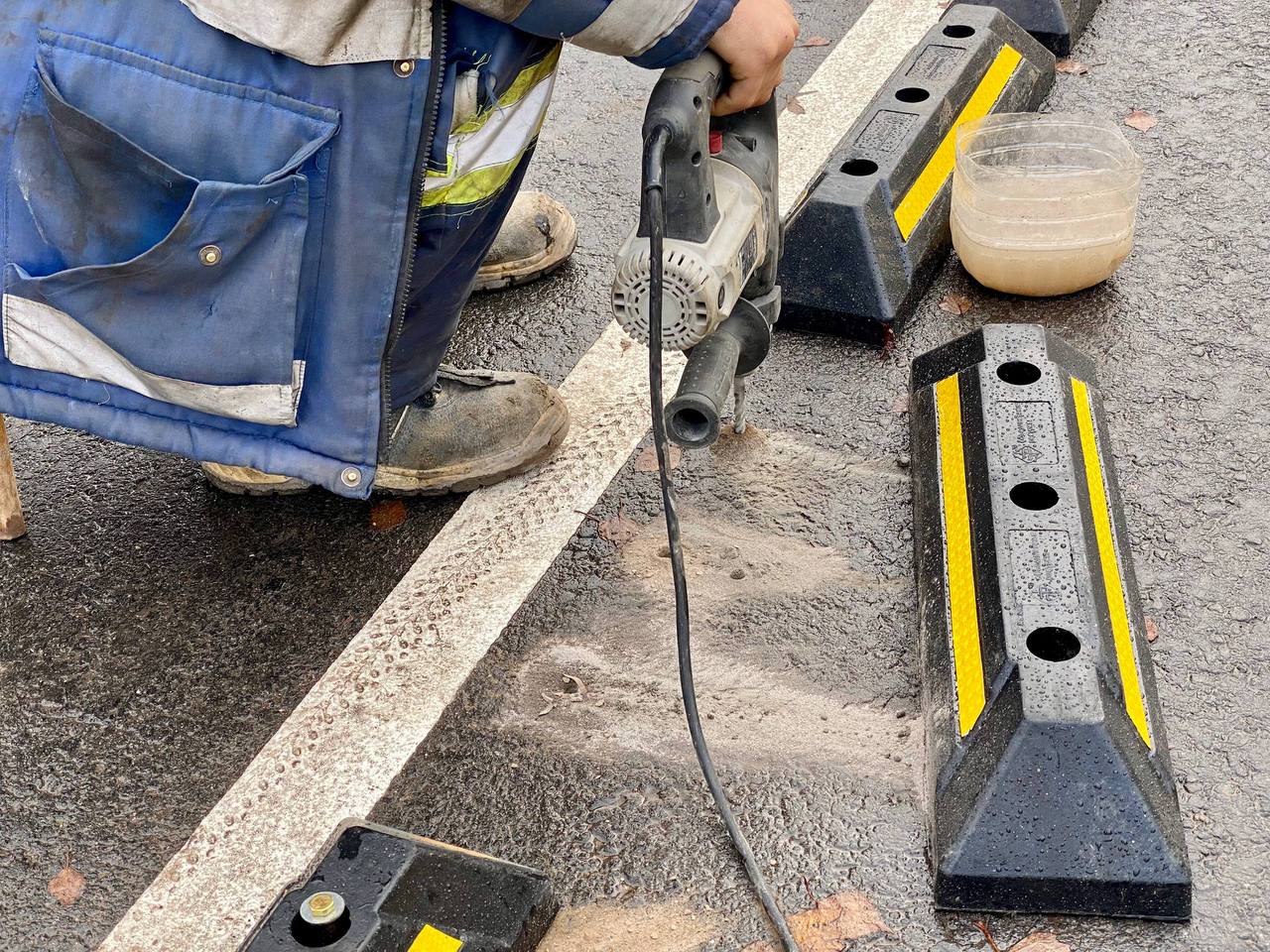 В Шабанах продолжается установка делиниаторов – искусственных бордюров, которые чётко определяют пешеходную переходную зону от проезжей части.