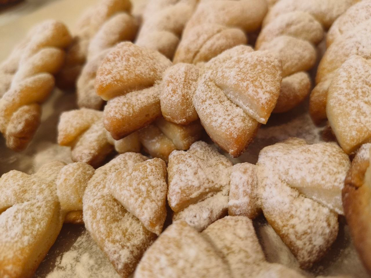 Перед тем как отправить печенье в духовку, стоит убедиться, что она разогрета до 180 градусов. Тесто раскатывается толщиной около 3-5 мм, из него вырезаются кружки, которые затем оформляются в форме бантиков или жгутов. Надрезы на кружочках делают их еще более привлекательными, а запекание занимает всего 20 минут. Эти милые печенья, посыпанные сахарной пудрой, обязательно порадуют любой сластёну!