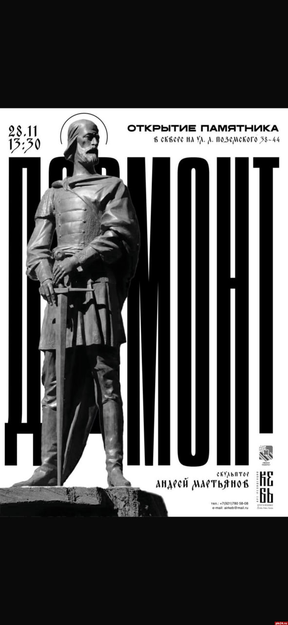 В октябре на место установки прибыл 70-тонный постамент. Автор памятника — скульптор Андрей Мартьянов.